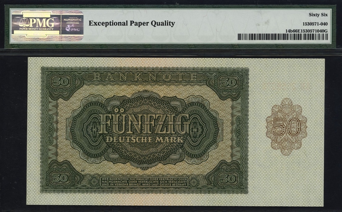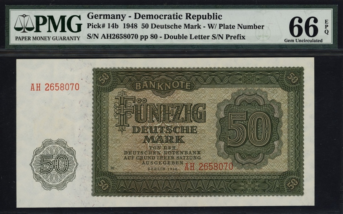 (x) Germany - Democratic Republic, 50 deutsche mark, 1948, serial number AH2658070, (Pick 14b), in PMG holder 66 EPQ Gem Uncirculated