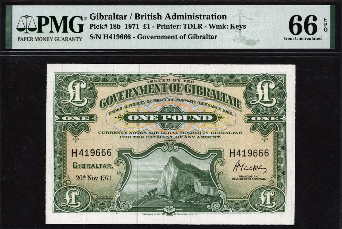 (x) Government of Gibraltar, £1, 1971, serial number H419666, (Pick 18b), in PMG holder 66 EPQ Gem Uncirculated