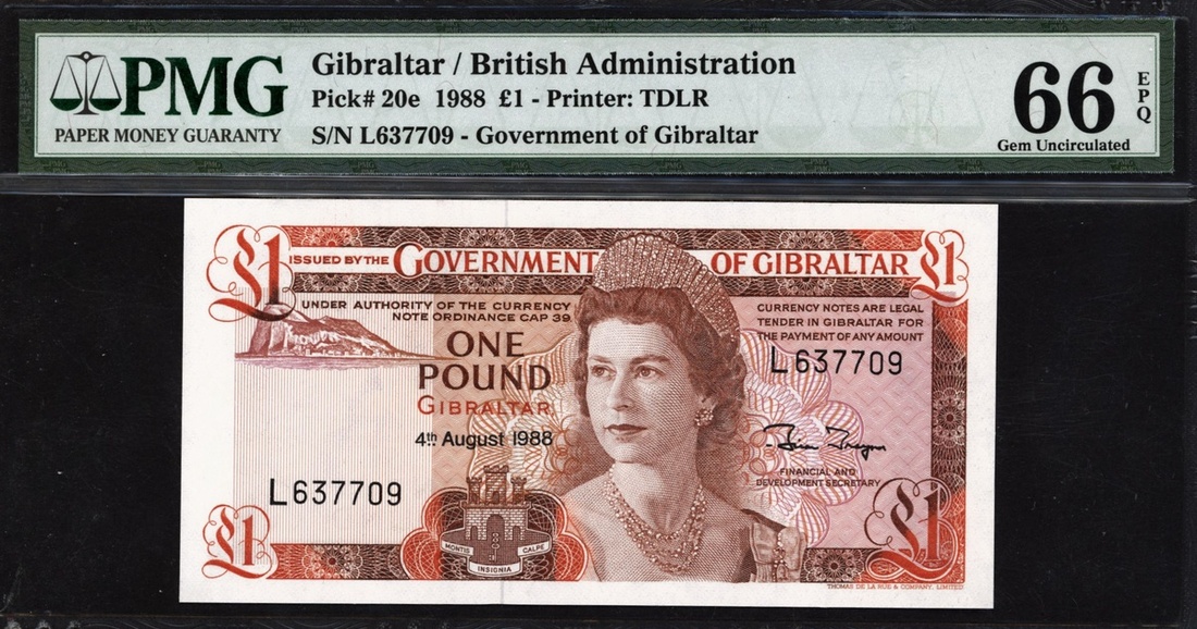 (x) Government of Gibraltar, £1, 1988, serial number L637709, (Pick 20e), in PMG holder 66 EPQ Gem Uncirculated
