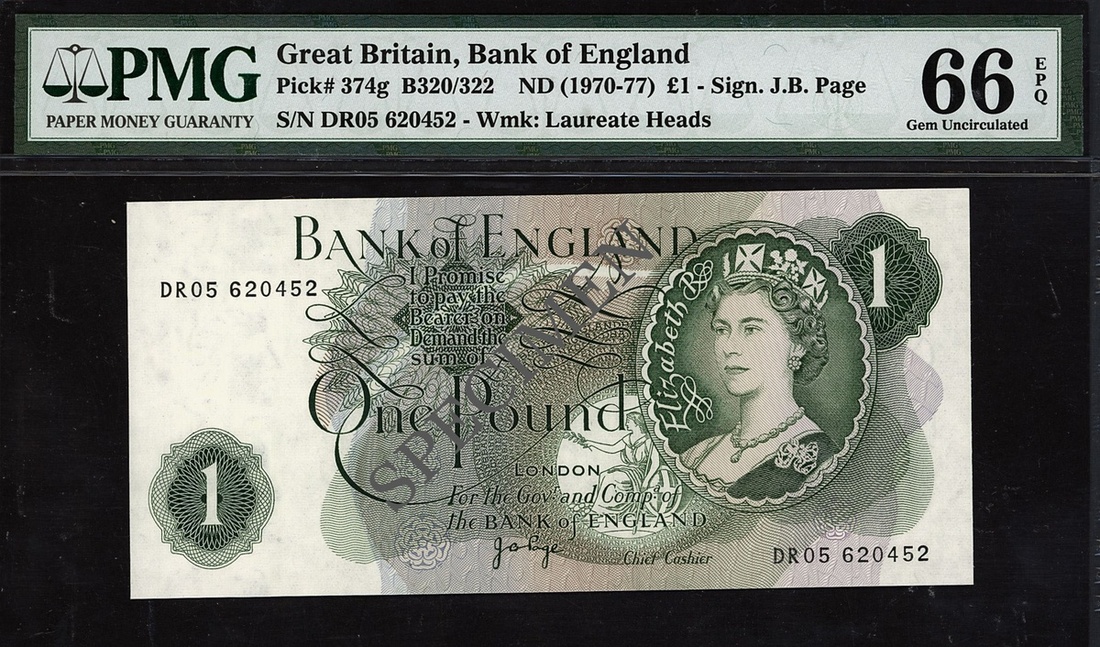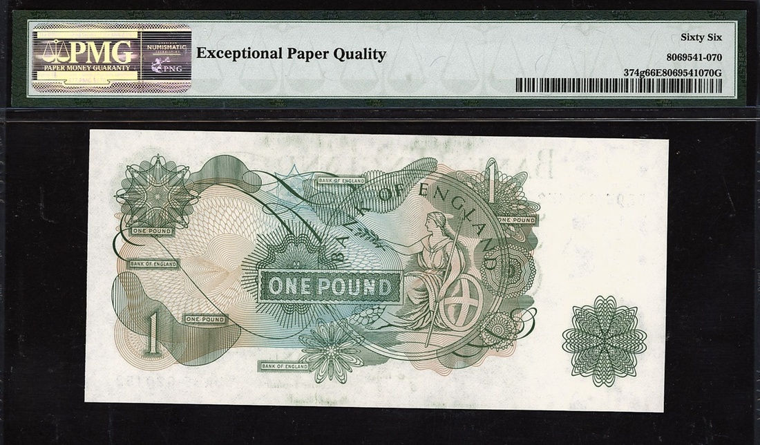 (x) Bank of England, J. B. Page £1, ND (1970-77), serial number DR05 620452, (EPM B322, Pick 374g), in PMG holder 66 EPQ Gem Uncirculated