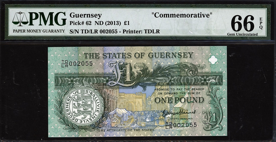 (x) The States of Guernsey, £1, ND (2013), serial number TD/LR 002055, (Pick 62), in PMG holder 66 EPQ Gem Uncirculated