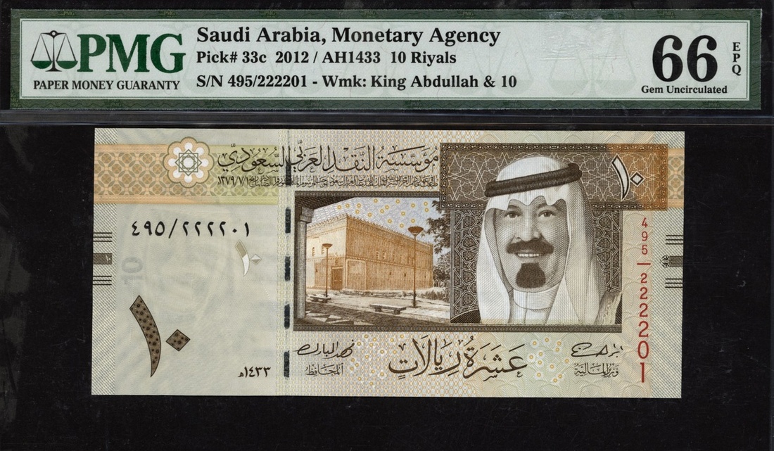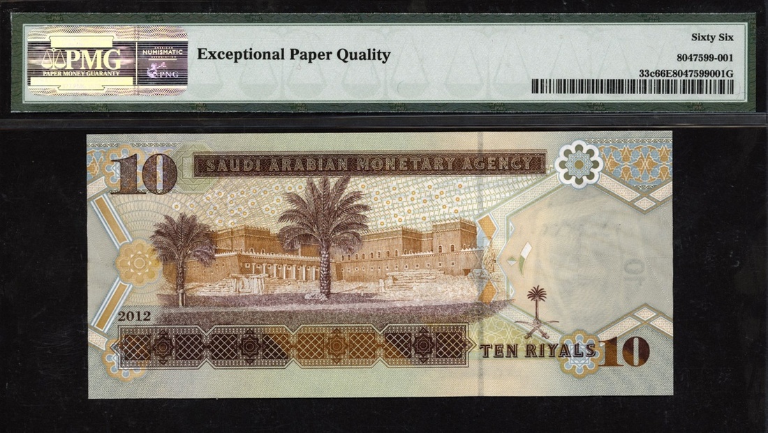 (x) Monetary Agency, Saudi Arabia, 10 riyals, 2012, serial number 495/222201, (Pick 33c), in PMG holder 66 EPQ Gem Uncirculated