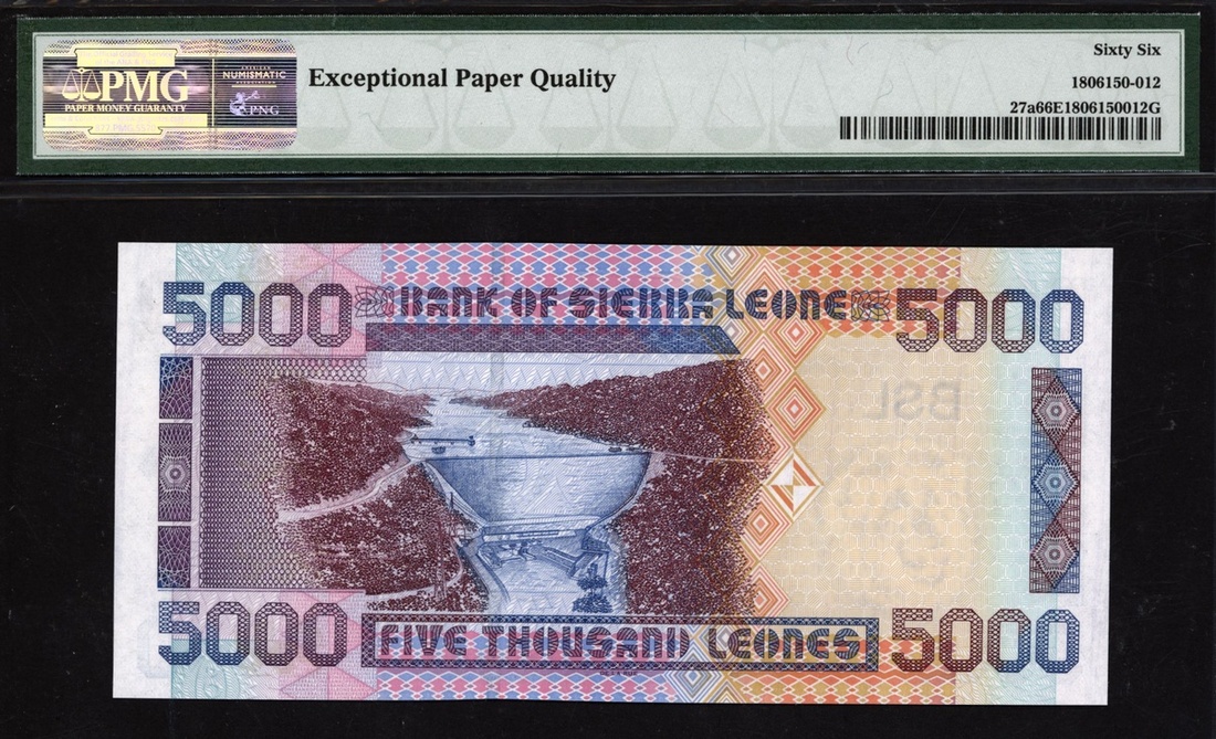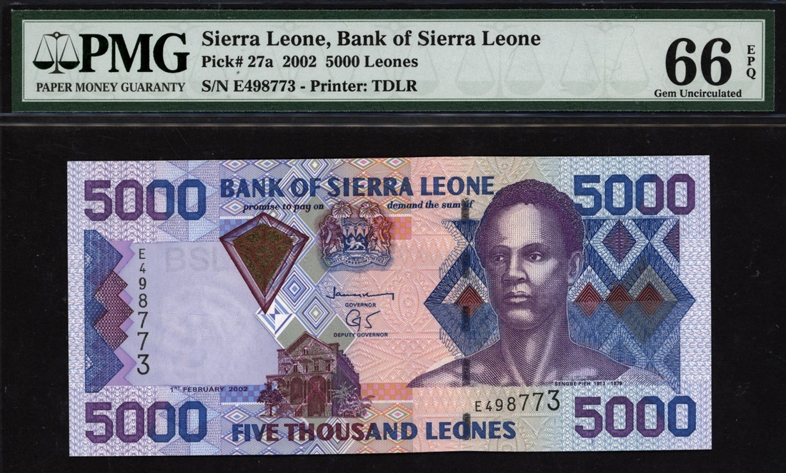 (x) Bank of Sierra Leone, 5000 leones, 2002, serial number E498773, (Pick 27a), in PMG holder 66 EPQ Gem Uncirculated