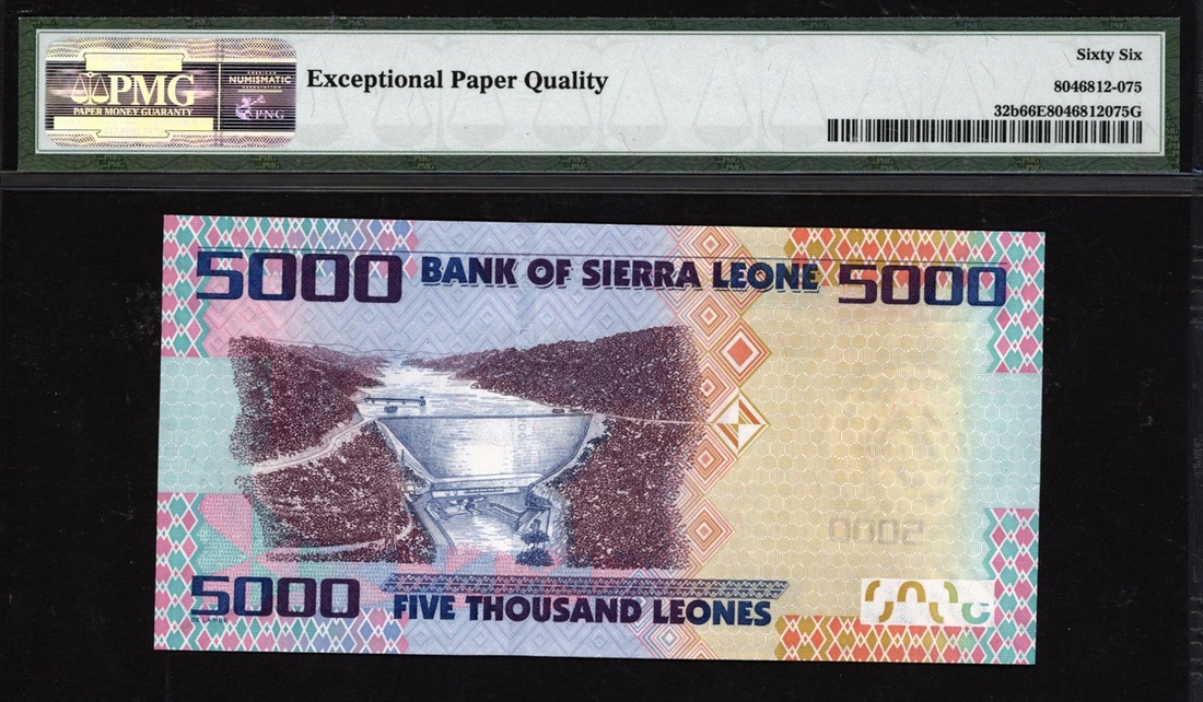 (x) Bank of Sierra Leone, 5000 leones, 2013, serial number GQ873819, (Pick 32b), in PMG holder 66 EPQ Gem Uncirculated