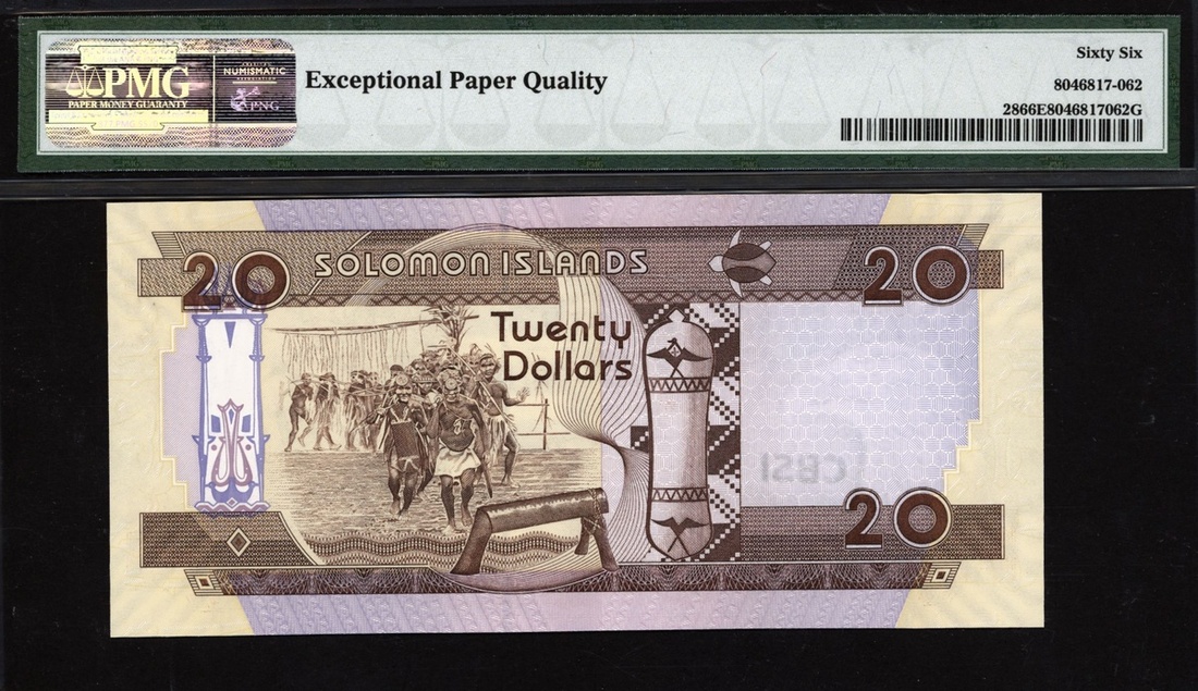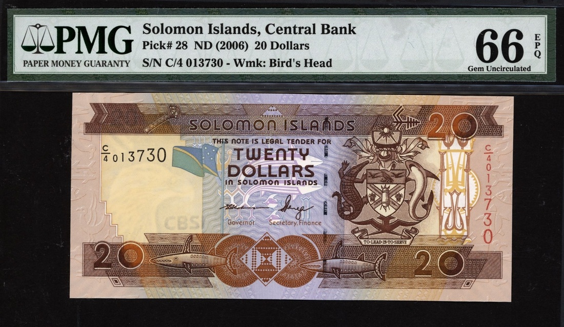 (x) Central Bank, Solomon Islands, 20 dollars, ND (2006), serial number C/4 013730, (Pick 28), in PMG holder 66 EPQ Gem Uncirculated