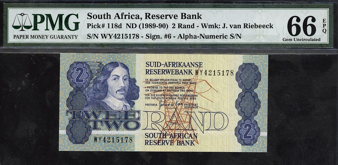 (x) Reserve Bank, South Africa, 2 rand, ND (1989-90), serial number WY4215178, (Pick 118d), in PMG holder 66 EPQ Gem Uncirculated