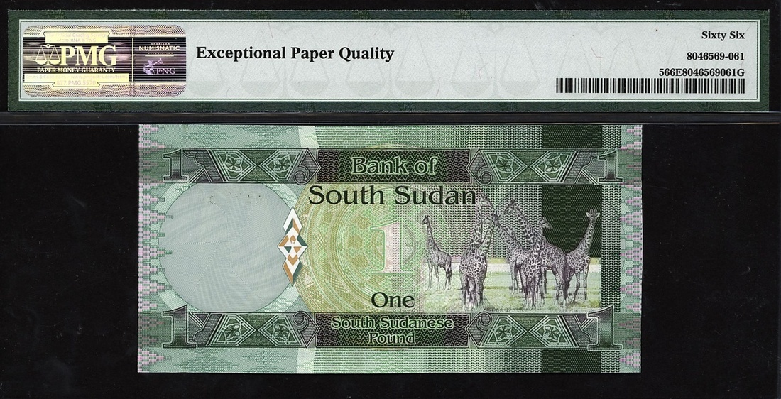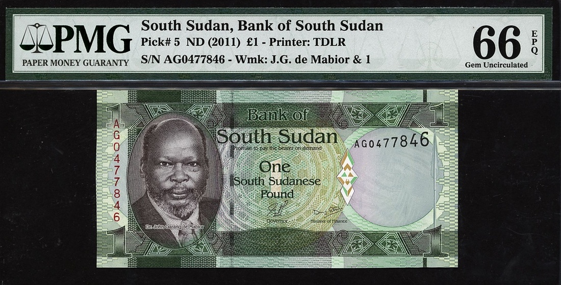 (x) Bank of South Sudan, £1, ND (2011), serial number AG0477846, (Pick 5), in PMG holder 66 EPQ Gem Uncirculated