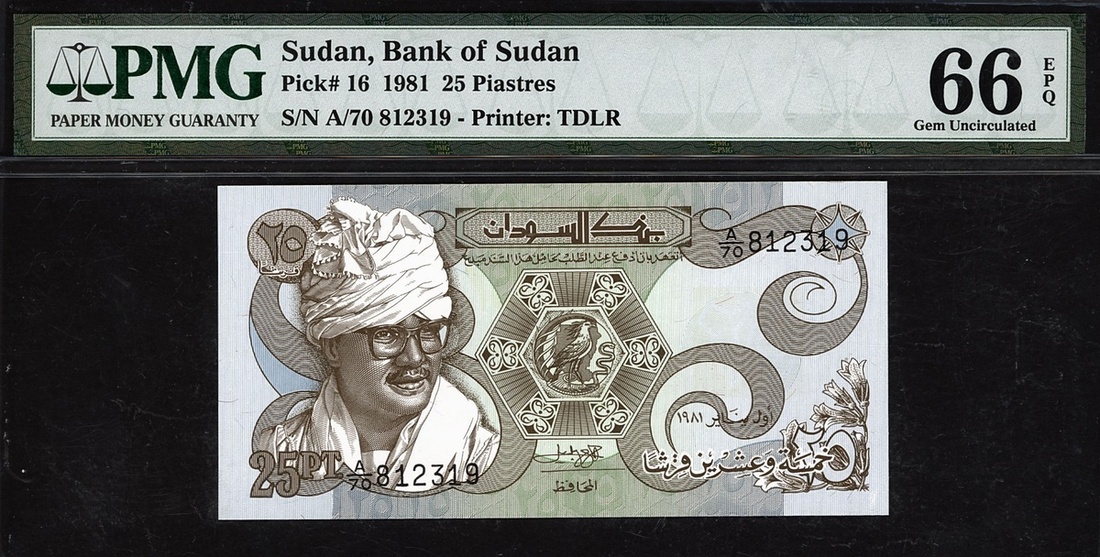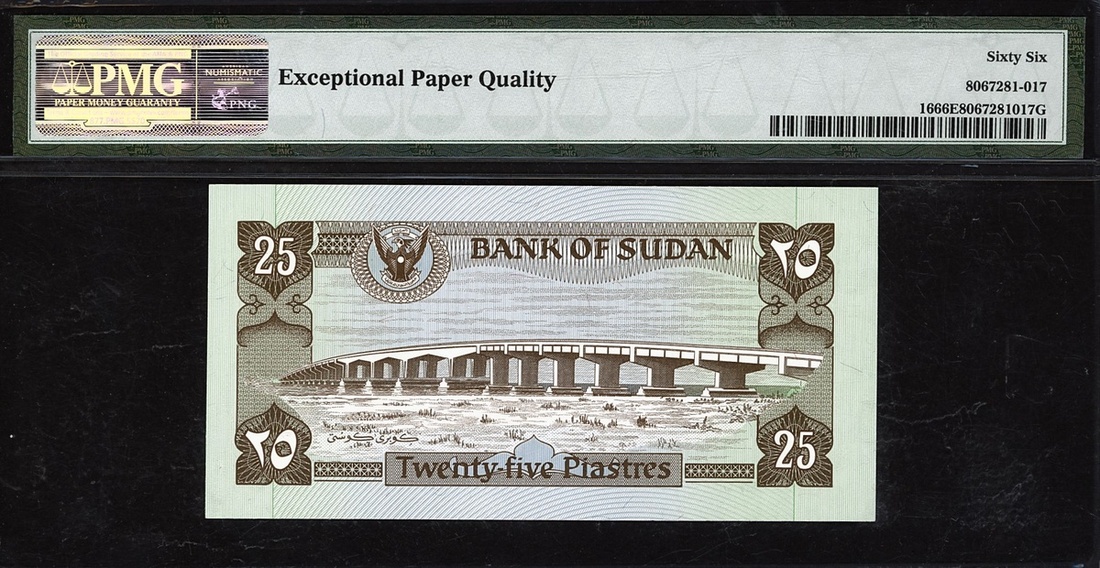 (x) Bank of Sudan, 25 piastres, 1981, serial number A/70 812319, (Pick 16), in PMG holder 66 EPQ Gem Uncirculated