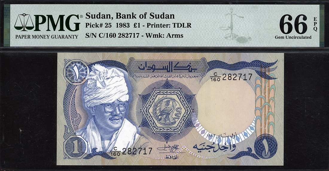 (x) Bank of Sudan, £1, 1983, serial number C/160 282717, (Pick 25), in PMG holder 66 EPQ Gem Uncirculated