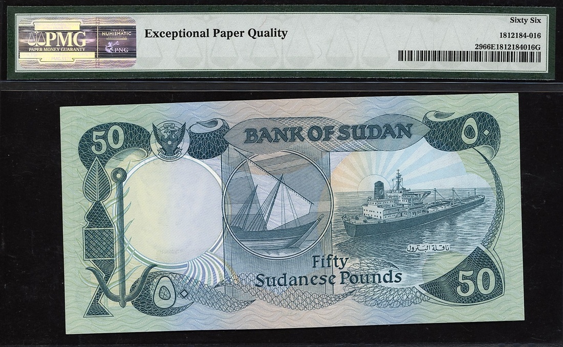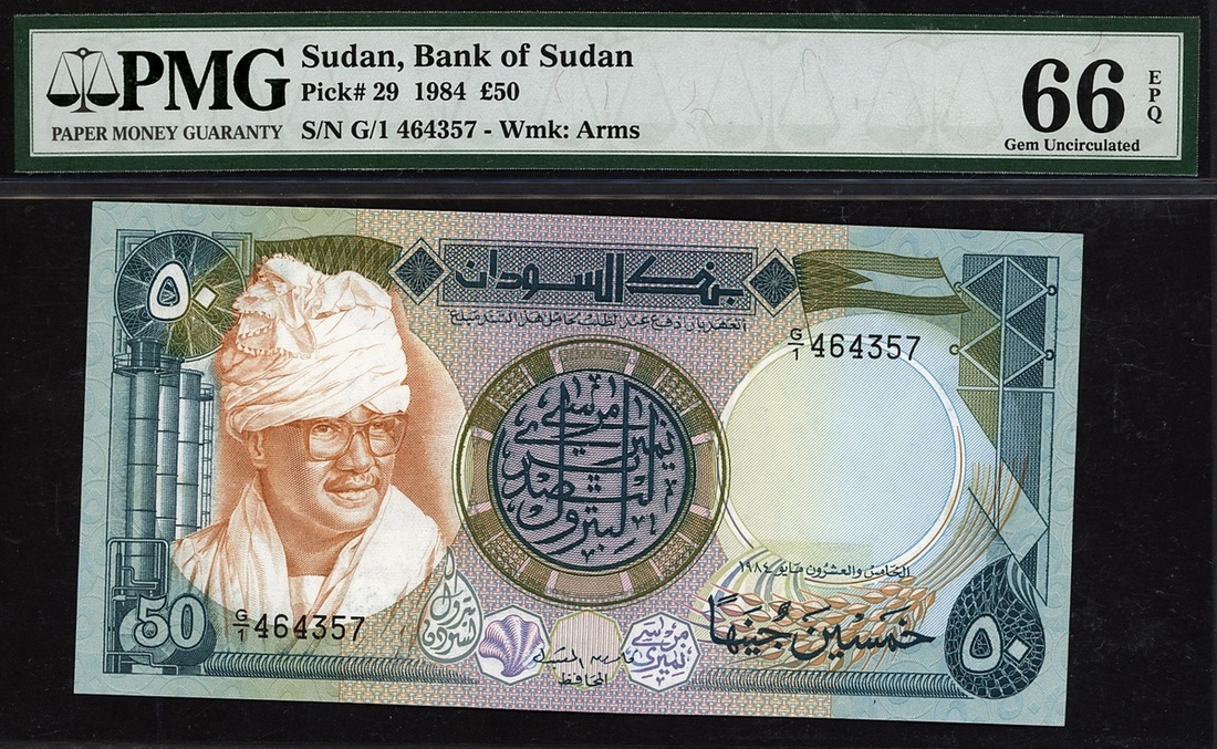 (x) Bank of Sudan, £50, 1984, serial number G/1 464357, (Pick 29), in PMG holder 66 EPQ Gem Uncirculated