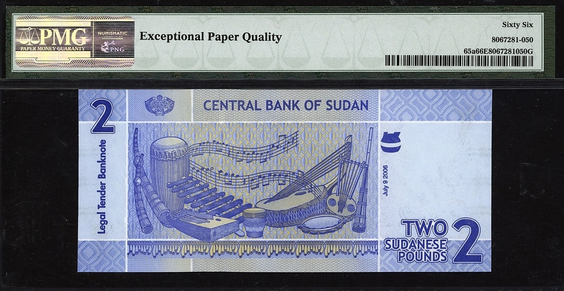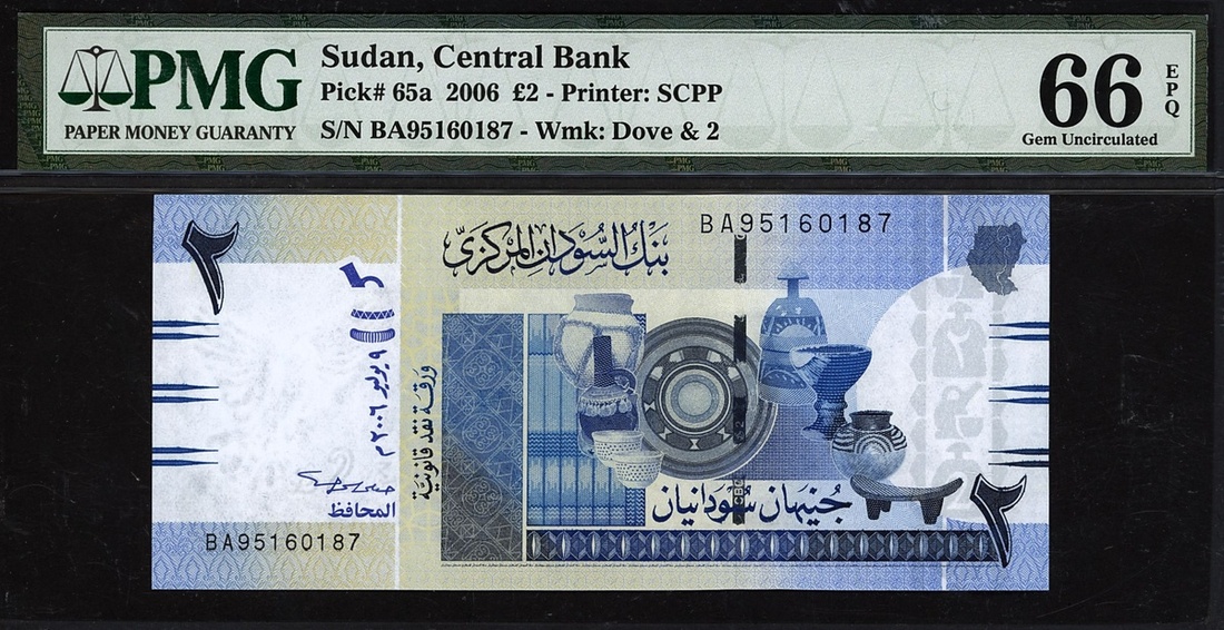 (x) Bank of Sudan, £2, 2006, serial number BA95160187, (Pick 65a), in PMG holder 66 EPQ Gem Uncirculated