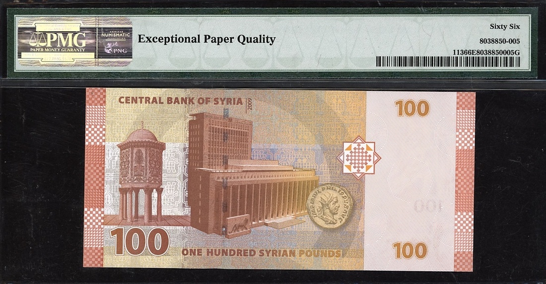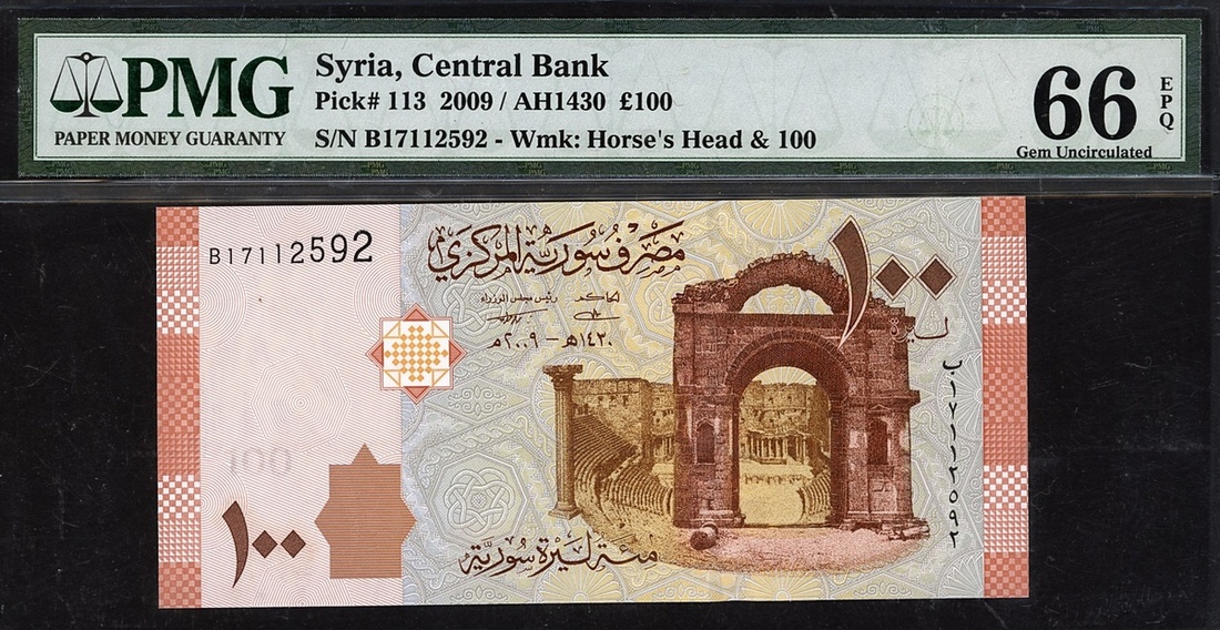 (x) Central Bank of Syria, £100, 2009, serial number B17112592, (Pick 113), in PMG holder 66 EPQ Gem Uncirculated