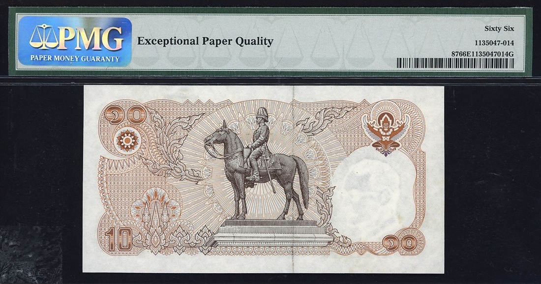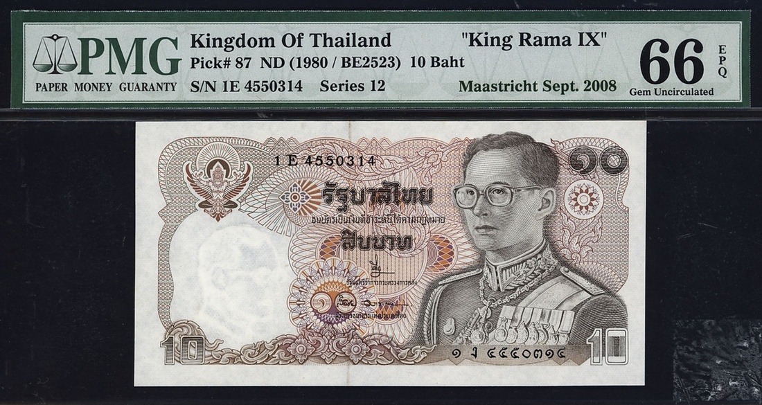 (x) Kingdom Of Thailand, 10 baht, ND (1980), serial number 1E 4550314, (Pick 87), in PMG holder 66 EPQ Gem Uncirculated