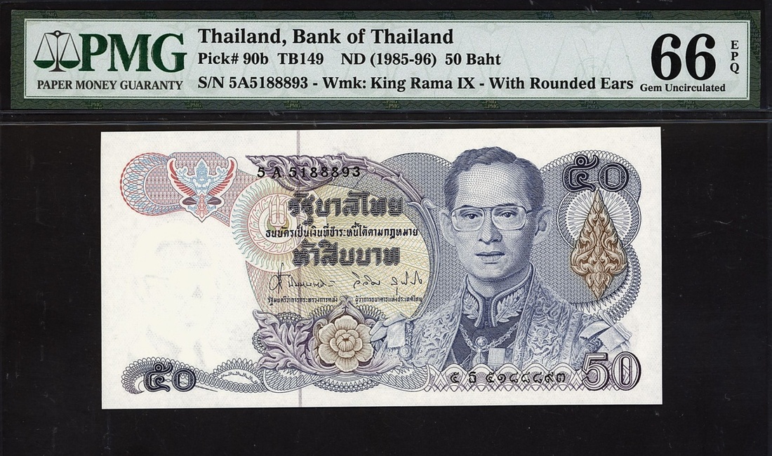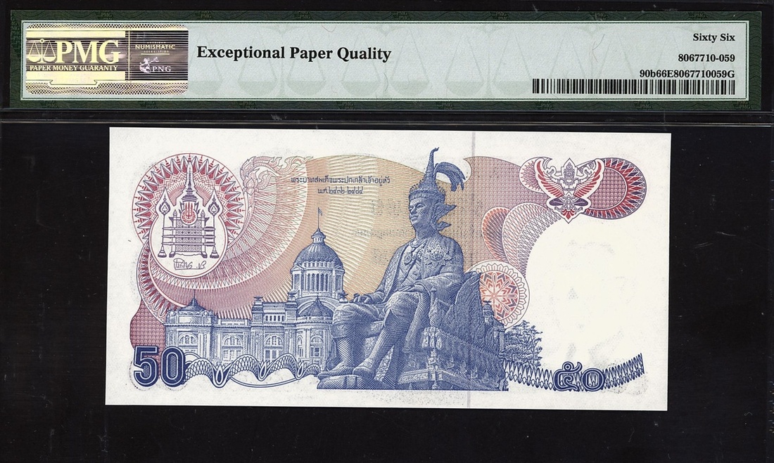 (x) Bank of Thailand, 50 baht, ND (1985-96), serial number 5A5188893, (Pick 90b), in PMG holder 66 EPQ Gem Uncirculated