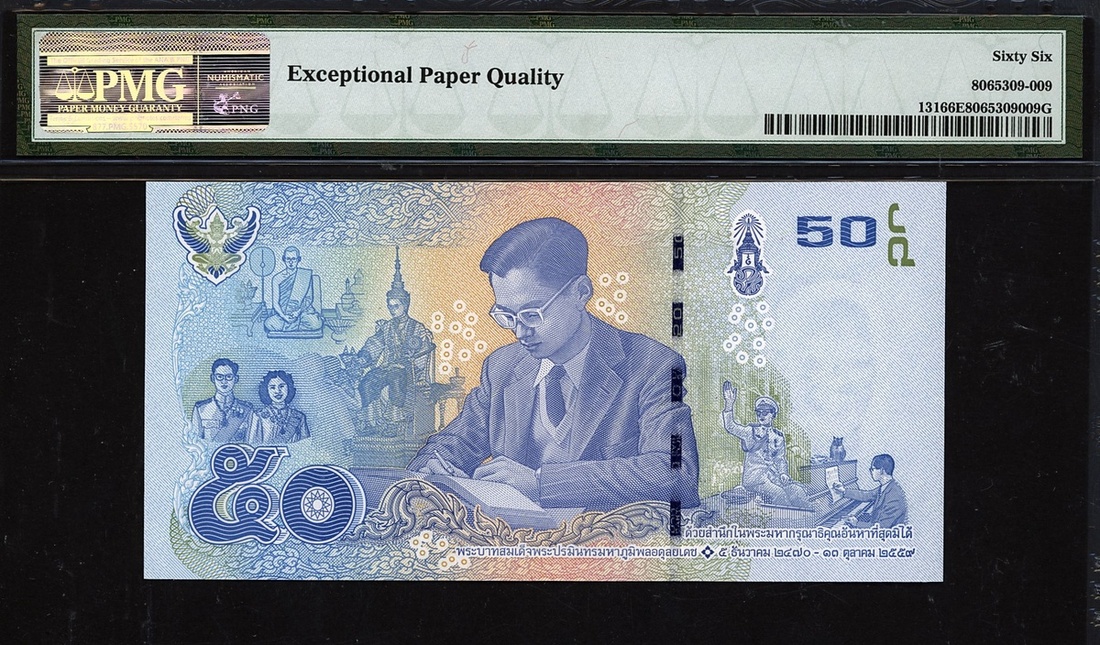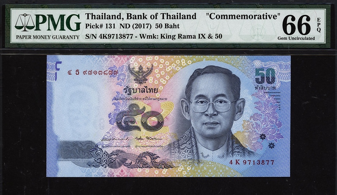 (x) Bank of Thailand, 50 baht, ND (2017), serial number 4K9713877, (Pick 131), in PMG holder 66 EPQ Gem Uncirculated