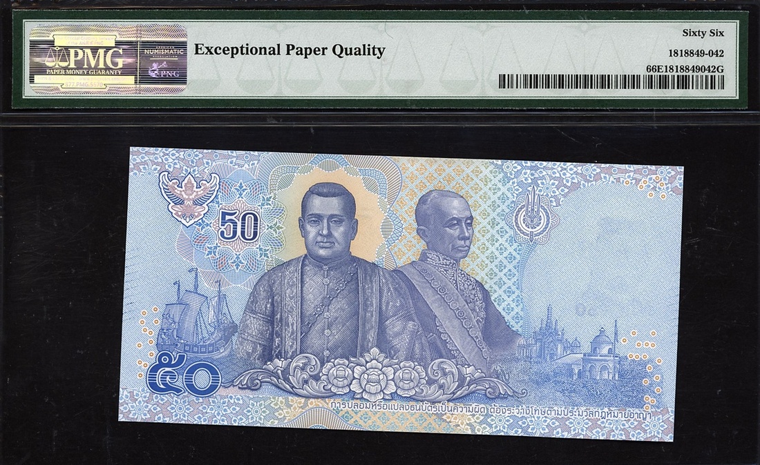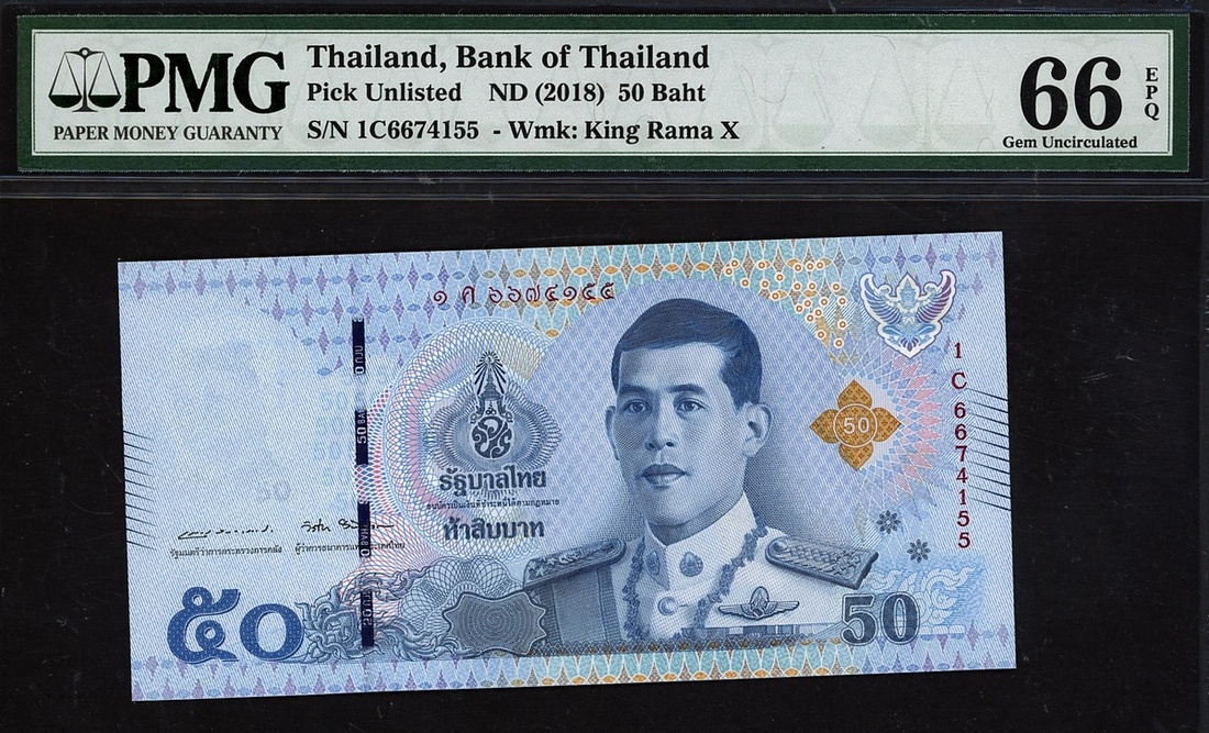 (x) Bank of Thailand, 50 baht, ND (2018), serial number 1C6674155, (Pick Unlisted), in PMG holder 66 EPQ Gem Uncirculated