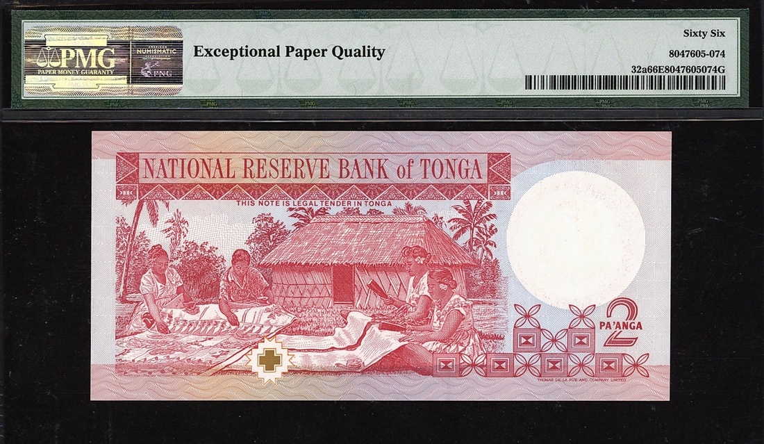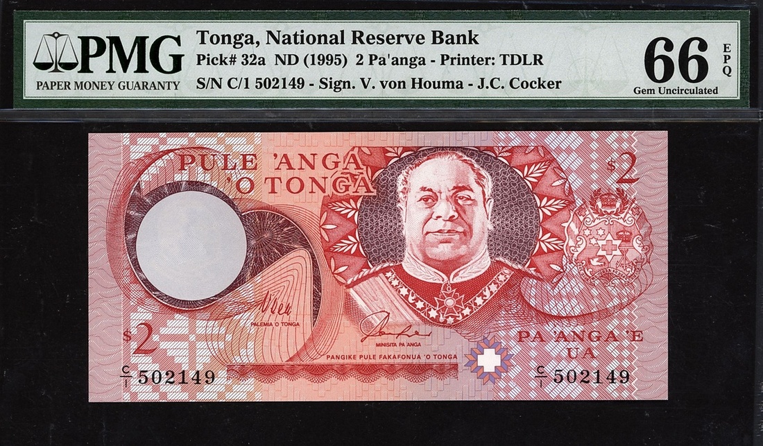 (x) National Reserve Bank of Tonga, 2 pa'anga, ND (1995), serial number C/1 502149, (Pick 32a), in PMG holder 66 EPQ Gem Uncirculated