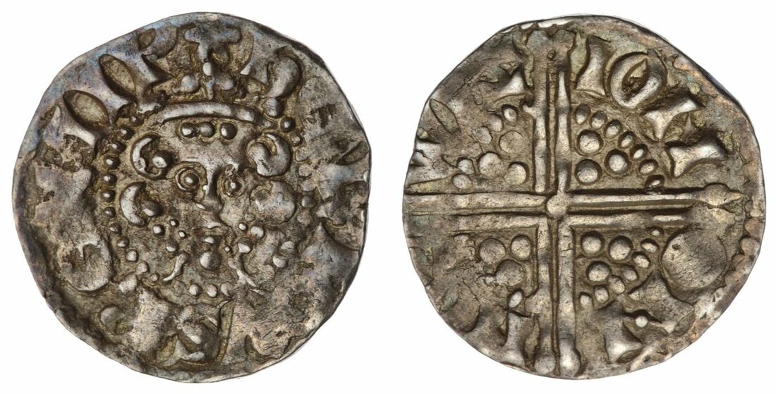 The 'Haddenham' Collection of English Coins | Henry III (1216-1272), (6) 'Long Cross' Type, Penny, Class 3c, including: London, Henri, * HENRICVS REX III, crowned head facing, im. star, rev. HEN RIO NLV NDE, long cross voided with three pellets in each angle, 1.44g, 11h (North 988; SCBI 66, 3829; Spink 1364), strong details throughout, deeply toned, very fine; and Norwich, Ion, similar obverse, rev. ION ON NOR WIC, long cross voided with three pellets in each angle, 1.49g, 11h (SCBI -), softness throughout, lightly toned, near very fine; and Oxford, Henri, similar obverse, rev. HEN RIO NO XON, long cross voided with three pellets in each angle, 1.50g, 8h, cracks in the surface, lightly toned, fine; and Oxford, Willem, similar obverse, rev. WIL LEM ONO XON, long cross voided with three pellets in each angle, 1.10g, 2h (SCBI -), bagmarks and surface crack at 1 o'clock, deeply toned, fine; and Winchester, Willem, similar obverse, rev. WIL LEM ONW INC, long cross voided with three pellets in each angle, 1.59g, 12h (North 988; SCBI 00, 0464; Spink 1364), softness in the fields, but legends good, toned, near very fine; and another, 1.47g, 6h (North 988; SCBI 00, 0464; Spink 1364), struck off centre, softness throughout, lightly toned, fine (6)
