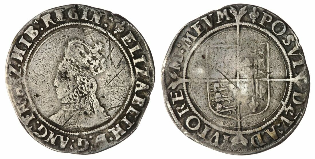 The 'Haddenham' Collection of English Coins | Elizabeth I (1558-1603), (3) Coins, including: First Issue, Shilling, Spring 1560 - 8 November 1560, Tower [Lower House], (m.m.) ELIZABETH : D .' G .' ANG .' FRA .' Z . HIB .' REGIN .' crowned bust 2A left, rev. (m.m.) POSVI DEV .' ADIVTOREM : MEVM, square-topped shield over long cross fourchée, 5.53g [85.2grns], 9h, m.m. lys (North 1985; Spink 2549), scratches and area of flatness, fair; (2) Groats, ELIZABETH:D.G:ANG:FR:Z:HIB:REGI, crowned bust left, rev. POSVI DEV:AD IVTORE M:MEV, quartered shield of arms of England and France over long cross fourchée, mm. lis, 1.98g, [30.6grns], 9h (North 1986; Spink 2550), complete flan, some softness about, toned, very fine; mm. lis, 2.14g, [33.2grns], 10h (North 1986; Spink 2551), complete flan, some softness about, toned, very fine (3)