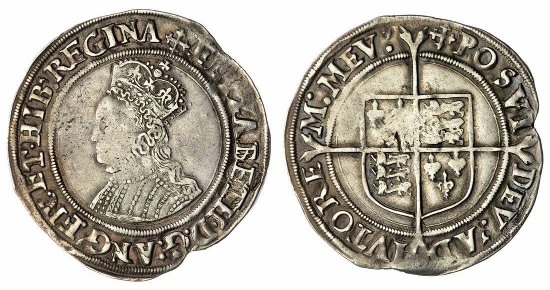 The 'Haddenham' Collection of English Coins | Elizabeth I (1558-1603), Second Issue, Shilling, 1560-1561, Tower [Lower House], (m.m.) ELIZABETH : D .' G .' ANG .' FR .' ET . HIB .' REGINA, crowned bust 1A left, pearl-beading on bodice, rev. (m.m.) POSVI DEV .' ADIVTOREM : MEV .' square-topped shield over long cross fourchée, 6.09g [94.2grns], 4h, m.m. cross crosslet (North 1985; Spink 2555A), some striking flatness on an irregular flan, good fine to near very fine
