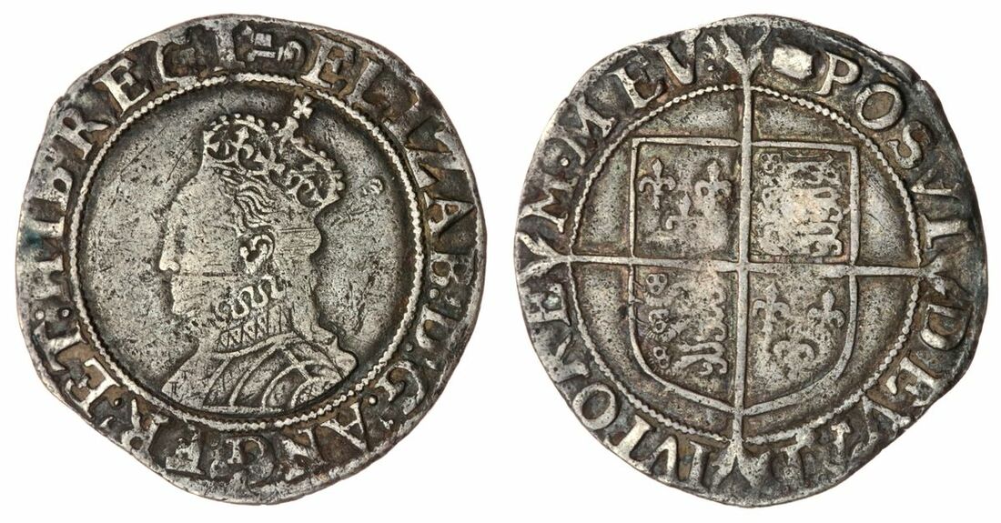 The 'Haddenham' Collection of English Coins | Elizabeth I (1558-1603), (3) Sixth Issue Shillings including: 1592-1594, Tower [Lower House], (m.m.) ELIZAB .' D .' G .' ANG .' FR .' ET . HIB .' REGI .' narrow beading, crowned bust 6B left, decorated bodice, rev. (m.m.) POSVI DEV .' ADIVTOREM : MEV .' narrow beading, square-topped shield over long cross fourchée, 5.91g [91.2grns], 10h, m.m. tun (North 2014; Spink 2577), creased, rubbed and flecked, darkly toned in peripheries, very fine; 1596-1598, 5.94g [91.6grns], 12h, m.m. key / woolpack (North 2014; Spink 2577), flecked, rubbed and toned, bolder than fine, an exceedingly rare pyx-mark mule; and, 1600, 5.90g [91.0grns], 5h, m.m. O (North 2014; Spink 2577), graffiti in obverse fields, lightly toned struck details a pleasingly bold fine (3)