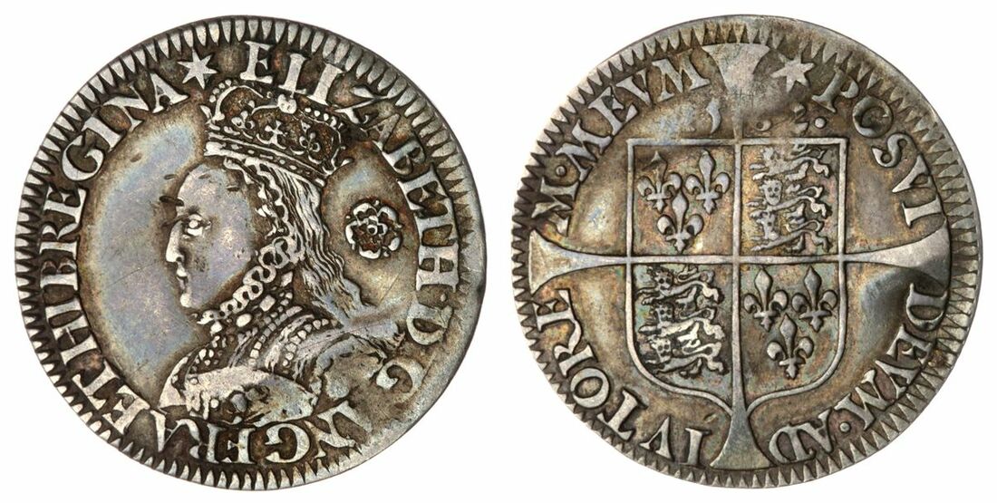 The 'Haddenham' Collection of English Coins | Elizabeth I (1558-1603), Mestrelle's Milled Issue, (2) Sixpences, 1562, Tower [Upper House], (m.m.) ELIZABETH o D o G o ANG o FRA o ET o HIB o REGINA, curly Z, shorter broad bust D left, with beaded bodice, small Tudor rose behind, rev. (m.m.) POSVI DEVM o AD-IVTOREM o MEVM, square-topped shield over long cross fourchée, edge plain, 3.01g [46.4grns], 8h, m.m. star (Borden/Brown 29, dies O4/R2; North 2028; Spink 2597), creased and dented, otherwise handsomely toned with underlying lustre, struck details bolder than very fine; and, 1568, 2.73g [42.2grns], 6h, m.m. lys (Borden/Brown 29, dies O4/R2; North 2028; Spink 2597), heavily creased with resultant flatness, lightly toned, strictly good to fair (2)