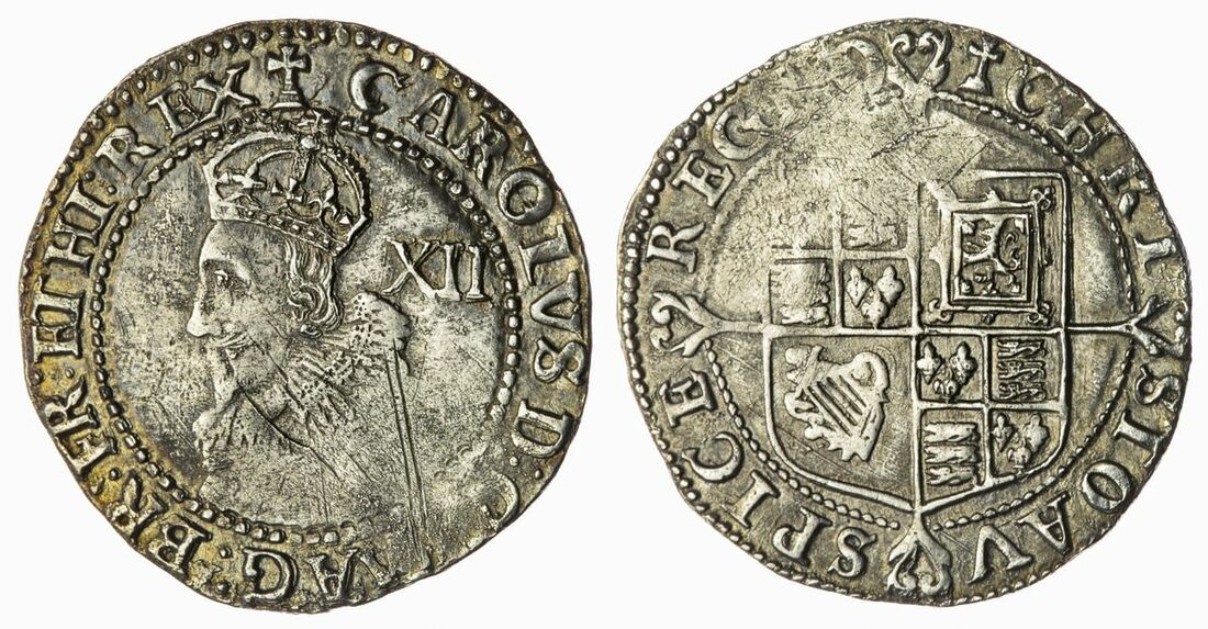 The 'Haddenham' Collection of English Coins | Charles I (1625-1649), (2) Shillings, including: Group A, 'Lightweight Issue', Shilling, struck 14 August - 7 September 1626, Tower [under King], (m.m.) CAROLVS D : G [:] MAG : BR : FR : ET HI : REX, larger crowned 'Coronation' bust 1a left, with plain and jewelled arch, XII behind, rev. (m.m.) CHRI-STO AV-SPICE REGNO, square-topped shield over long cross fourchée, 4.93g [76.0grns], 8h, m.m. cross calvary [over lis on obv.] (Brooker 393-394; Sharp A2/1; North 2216; Spink 2782), scratches below bust and striking flatness to ruff, otherwise residually lustrous on a neat round flan, mostly very fine, scarce; and, Group B, Type 1a, Shilling, struck 14 August - 7 September 1626, Tower [under King], (m.m.) CAROLVS D : G : MAG : BRI : FRA : ET HI : REX, colon stops, second crowned bust left, wearing stiff Picard, XII behind, rev. (m.m.) CHRI-STO AV-SPICE REGNO, square-topped shield over long cross fourchée, 5.97g [91.6grns], 12h, m.m. cross calvary (Brooker 403; Francis 1a; Sharp B1/1; North 2218; Spink 2782), rubbed with peripheral striking softness, flawing before breast, otherwise struck details fine (2)