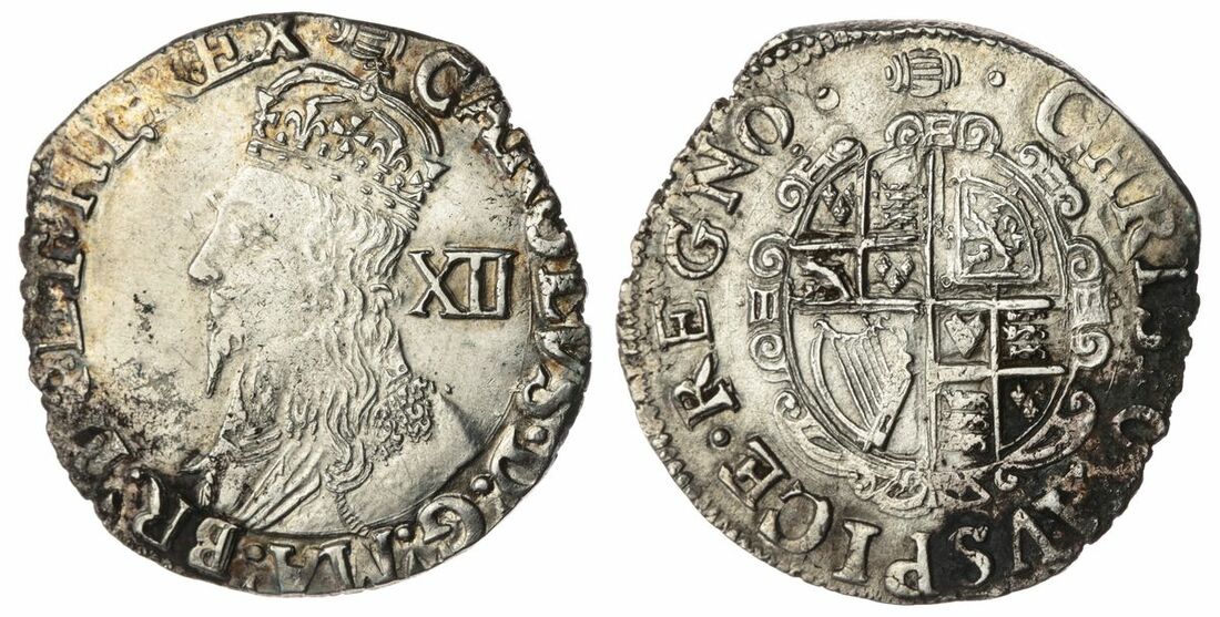 The 'Haddenham' Collection of English Coins | Charles I (1625-1649), (2) Shillings, including: Group D, Type 4.1, Shilling, 1636-1638, Tower [under King], (m.m.) CAROLVS . D .' G .' MA .' BR .' FR .' ET . HI .' REX . fourth crowned bust left, wearing falling lace collar, XII behind, no inner circle, rev. (m.m.) . CHRISTO AVSPICE REGNO . oval-garnished shield, 6.03g [93.2grns], 12h, m.m. tun (Brooker 507; Sharp E3/2; North 2225; Spink 2791), irregular edge between 7 and 10 o'clock and staining to reverse, otherwise bright and lustrous, almost extremely fine; and, Type 3b, 5.39g [83.2grns], 8h, m.m. tun (Brooker 508; Francis 3c; Hawkins 3b; Sharp E2/3; North 2226; Spink 2793), rubbed virtually smooth, the variety nonetheless clear, scarcely good but extremely rare, reputedly only four known (2)