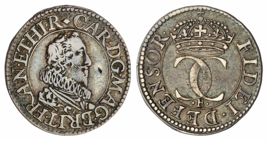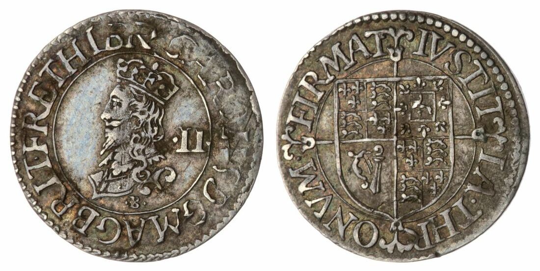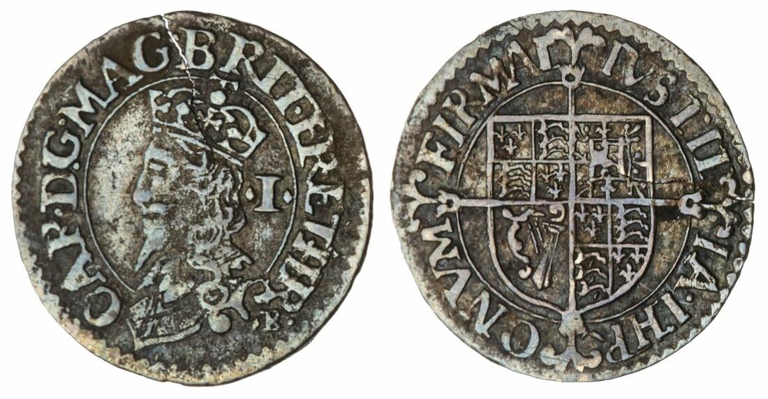 The 'Haddenham' Collection of English Coins | Charles I (1625-1649), (5) Halfgroats, Nicholas Briot's Coinage, First Milled Issue, CAROLVS D . G : MAGBRIT FR ET HIBR ·, crowned bust left, II behind, rev. IVSTIT IA · THR ONVM · FIRMAT, quartered shield of arms over long cross fourchée, mm. B, 1.09g, 6h (North 2302; Spink 2856), complete flan, some wear to the legends but otherwise very fine; and Pattern Halfgroat, Nicholas Briot's Coinage, First Milled Issue, CAR D . G : MAG . BRIT FR AN . ET . HIR ·, uncrowned bust right, rev. FIDEI . DEFENSOR, two interlocked Cs at centre with crown above and B below, mm. B, 1.43g, 6h (North 2687; Spink 2856A), complete flan, lightly toned, very fine; another, mm. B, 0.40g, 9h, (North 2303; Spink 2857), hairline crack through flan from 12 o'clock, toned, very fine; and, Briot's Second Milled Issue, 2.93g, [45.0grns], 6h, m.m. anchor (North 2306; Spink 2860), complete flan, some light scratches in the fields but otherwise evenly toned, very fine; another, 2.90g, [44.8grns], 6h, m.m. anchor (North 2306; Spink 2860), some scratches in the fields, toned, near very fine (5)