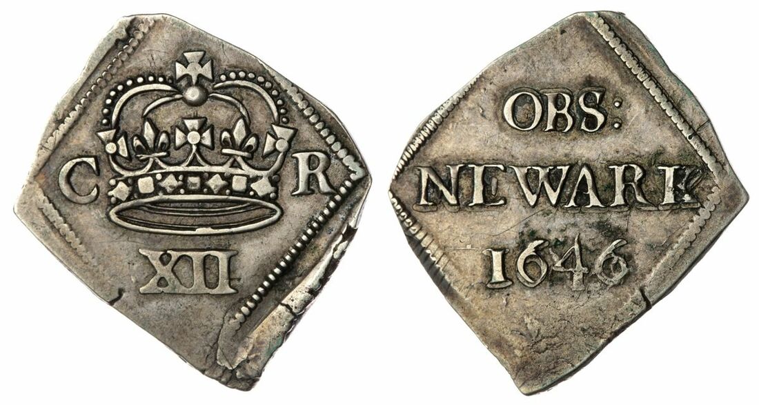 The 'Haddenham' Collection of English Coins | Charles I (1625-1649), Civil War Issues, Siege of Newark, Shilling, 1646, taller crown with pearls and jewels on band, dividing cypher, rev. OBS: NEWARK 1646 in three lines, 5.48g [84.4grns], 11h (Hird 255-259 same dies; Brooker 1225 same dies; North 2640; Spink 3143), small striking splits to a truncated flan, lightly toned, good very fine, an iconic and enduringly popular English Civil War 'Siege' coin in a most presentable grade