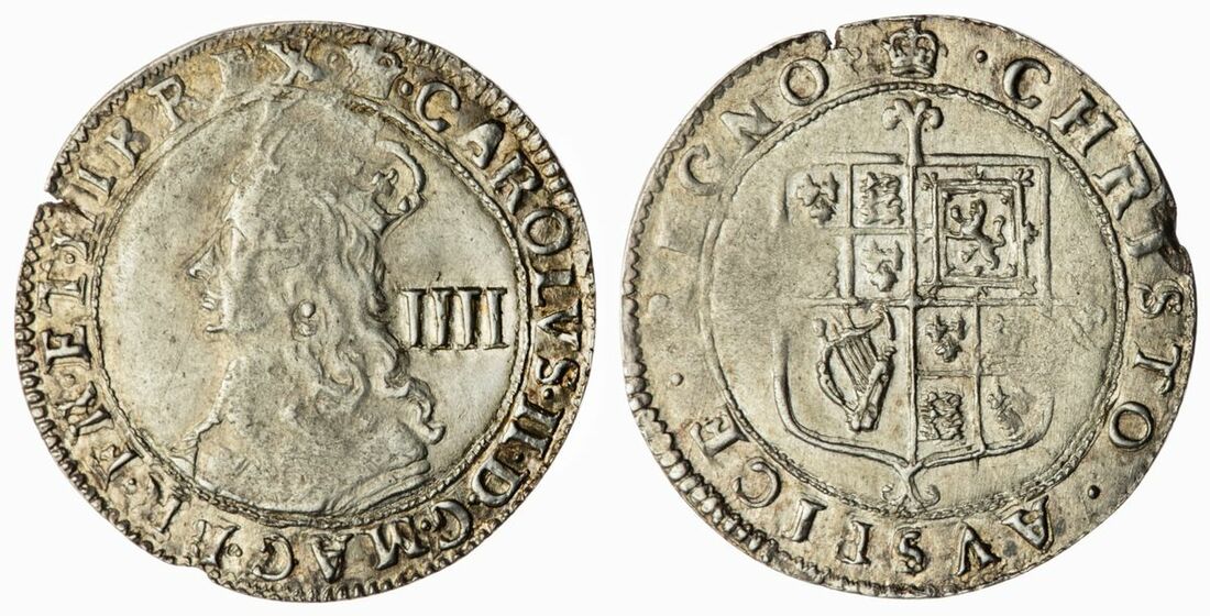 The 'Haddenham' Collection of English Coins | Charles II (1660-1685), (5) Coins from Third Hammered Issue, including: Sixpence, CAROLVS II D·G·MAG:BRI:FRA:ET·HIB:REX, crowned bust left, rev. · CHRISTO · AVSPICE · REGNO ·, mm. crown, 3.06g, [47.2grns], 4h (ESC 1510; Spink 3323), clipped edges, wear throughout, lightly toned, fine; and Fourpence, CAROLVS·II·D·G·MAG·BR·FR·ET·HIB·REX, crowned bust left, rev. CHRISTO · AVSPICE · REGNO, quartered shield of arms over short cross fourchee, mm. crown, 1.85g, [28.4grns], 3h (ESC 1839; Spink 3324), small cracks in flan, lightly toned, good fine; and, Threepence, 1660-1662, London, o CAROLVS o II o D o G o M o B o FR o ET HI o REX o crowned Coronation bust left, IIII behind, rev. (m.m.) o CHRISTO o AVSPICE o REGNO o square-topped shield over short cross moline, 1.49g, [23.4grns], 4h, m.m. crown (ESC 1957; Bull 325; Spink 3325), lightly toned, very fine or marginally better; and, Twopence, CAROLVS · II · D · G · MAG · BRI · FRA · ET · HIB · REX, crowned bust left, II behind, rev. · CHRISTO · AVSPICE · REGNO, quartered shield of arms over cross fourchée, mm. crown, 1.00g, 2h (North 2772; ESC 2165; Spink 3326), some light wear to the edges but otherwise toned with aureate hues, very fine; and, Penny, CAROLUS II D G M B F & H REX, crowned bust left, I behind, rev. CHRISTO AVSPICE REGNO, square topped shield, 0.47g, 3h, (ESC 2270; North 2775; Spink 3327), uneven flan, softness about, toned, fine (5)