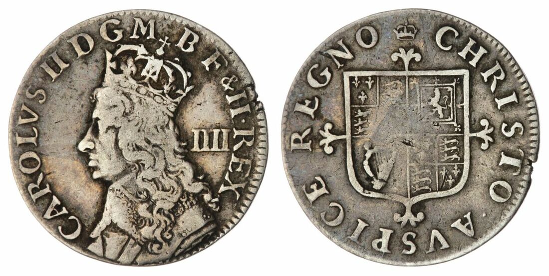The 'Haddenham' Collection of English Coins | Charles II (1660-1685), (3) Coins including: Maundy Fourpence and Threepence (2), Milled Issue, CAROLVS II D G M B F & H REX, crowned bust left, rev. CHRISTO AVSPICE REGNO, quartered shield over short cross fourchee, 1.95g, [30.0grns], 6h, m.m crown; 1.47g, [22.6grns], 6h, m.m crown (ESC1840; 1958), both complete, very fine; and, Third Hammered Issue, Threepence, 1660-1662, London, struck with a Fourpence obverse die [or a Fourpence struck on a Threepence flan in error], (m.m.) o CAROLVS o II o D o G o M o B o FR o ET HI o REX o crowned Coronation bust left, IIII behind, rev. (m.m.) o CHRISTO o AVSPICE o REGNO o square-topped shield over short cross moline, 1.45g, [22.6grns], 4h, m.m. crown (ESC - [1839/1957]; Bull - [322/325]; Spink 3324/3325), small flan split at 1 o'clock, otherwise richly cabinet toned, good very fine / about extremely fine, either error unknown to Bull and Rayner, presumably excessively rare thus (3)