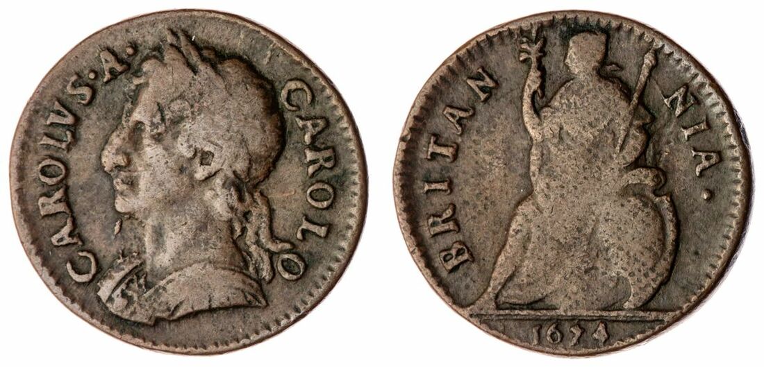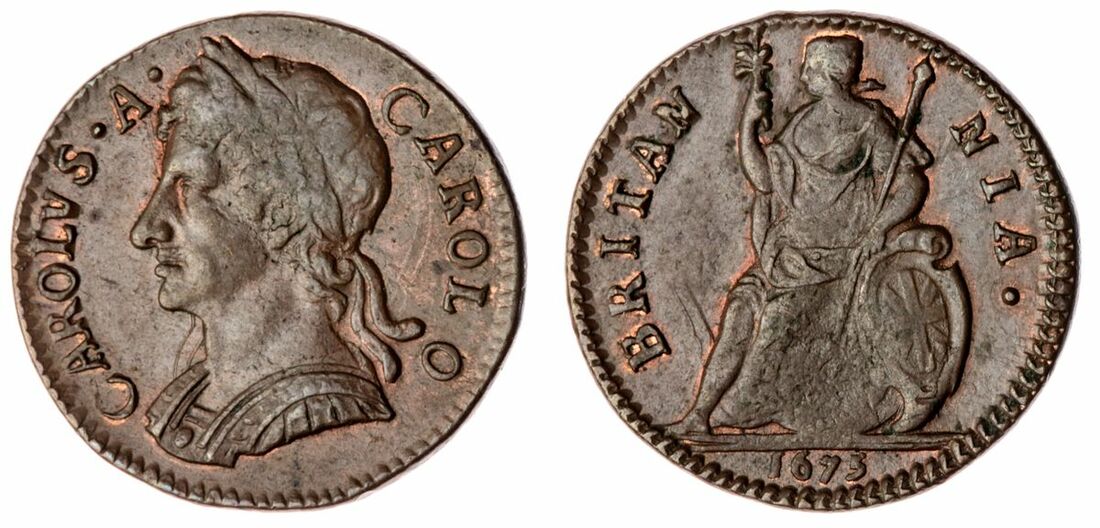 The 'Haddenham' Collection of English Coins | Charles II (1660-85), (3) Farthings, 1673, 1674, 1675, cuirassed bust left, rev. Britannia seated left, plain edge, 5.55g; 5.32g; 5.52g, 6h (Peck 522, 527, 528; Spink 3394), all are rubbed to devices, otherwise toned, fine (3)