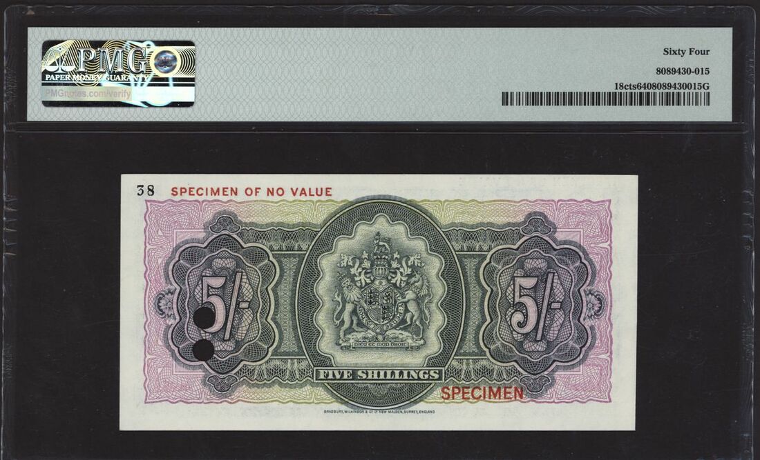(x) Bermuda Government, colour trial specimen 5 shillings, ND (1952-57), serial number 38, (Pick 18cts, BNB 119cts), in PMG holder 64 Choice Uncirculated, scarce