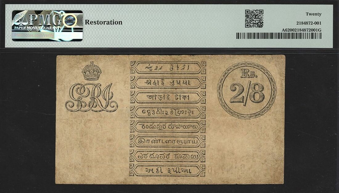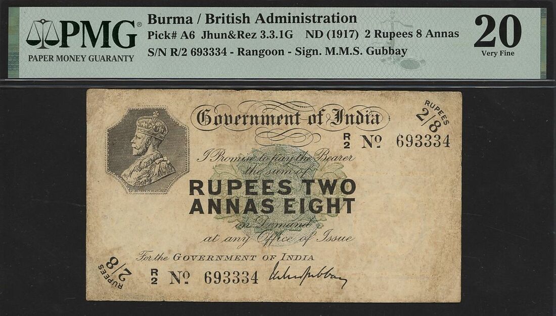(x) Government of India, Burma, 2 rupees 8 annas, ND (1917), serial number R/2 693334, Rangoon Circle