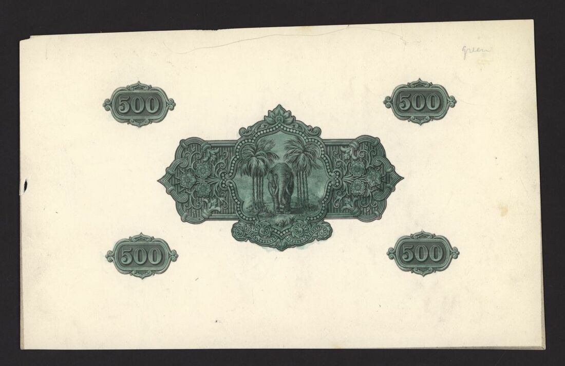 Government of Ceylon, reverse essay, 500 rupees, (Unlisted), deep green, striking visuals, rare