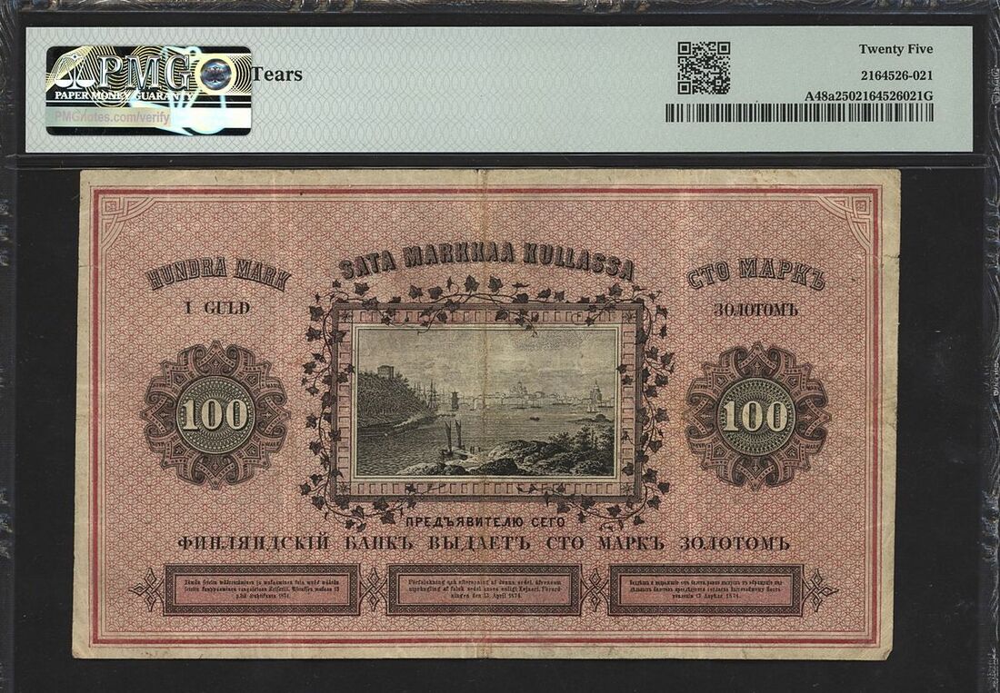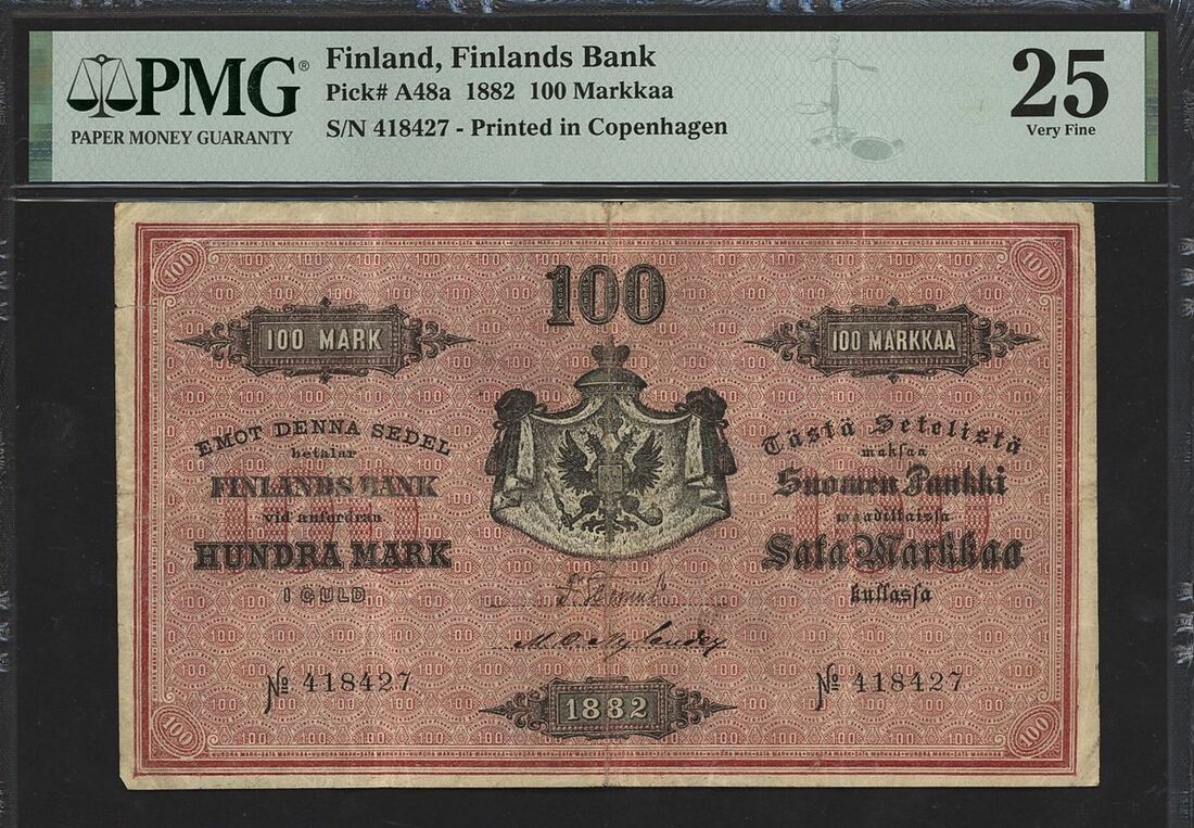 Finlands Bank, Finland, [Top Pop] 100 markkaa, 1882, serial number 418427, Russian coat of arms at centre