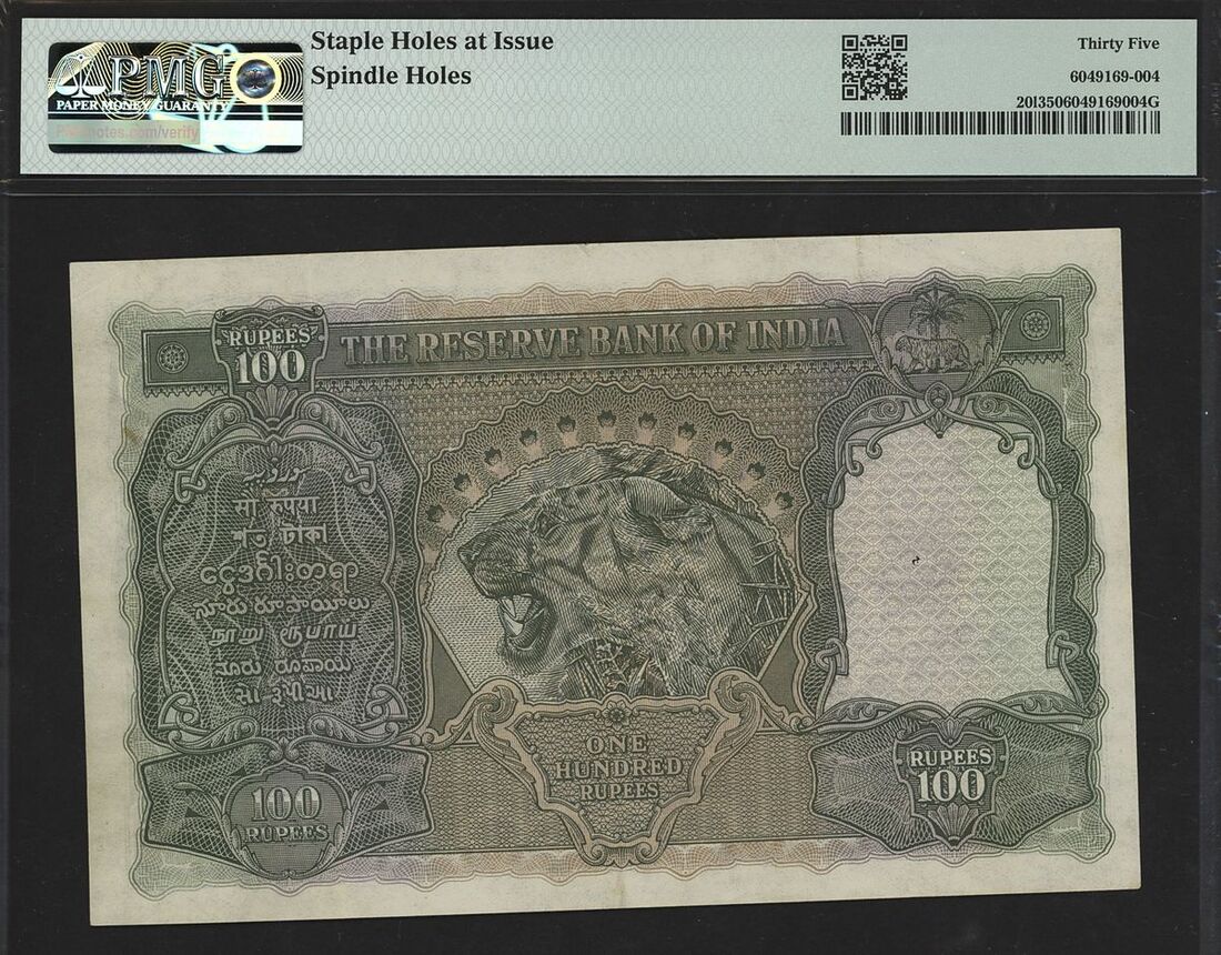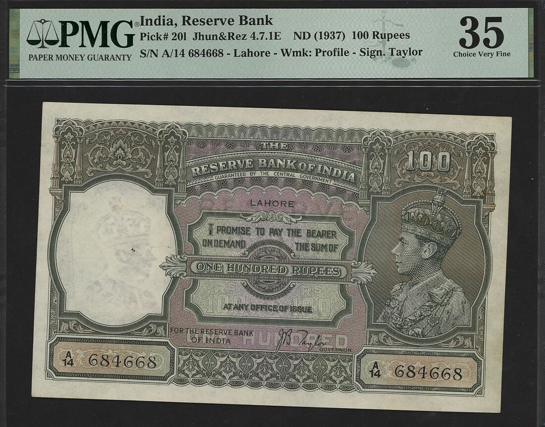 (x) Reserve Bank of India, 100 rupees, ND (1937), serial number A/14 684668, Lahore Circle