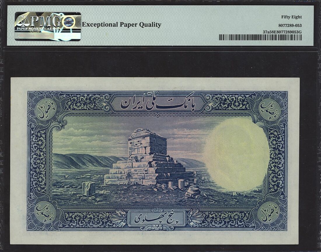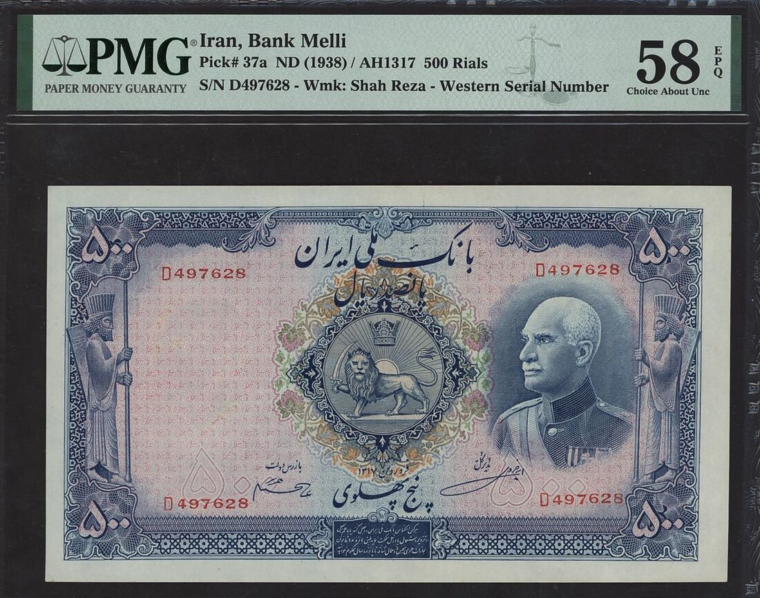 (x) Banque Mellie Iran, 500 rials, ND (1938), serial number D497628, (Pick 37a, BNB 131), in PMG holder 58 EPQ Choice About Uncirculated