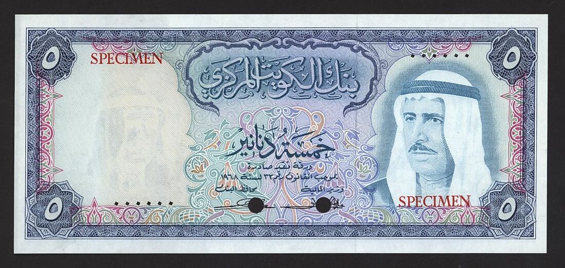 (x) Central Bank of Kuwait, specimen 5 dinars, 1968, (Pick 9s, BNB 204s), uncirculated, rare