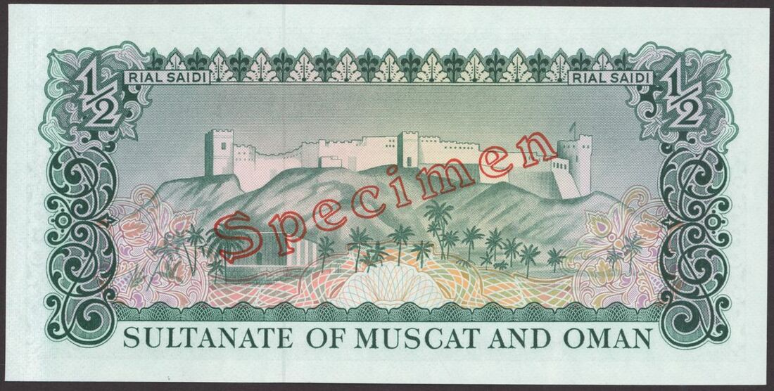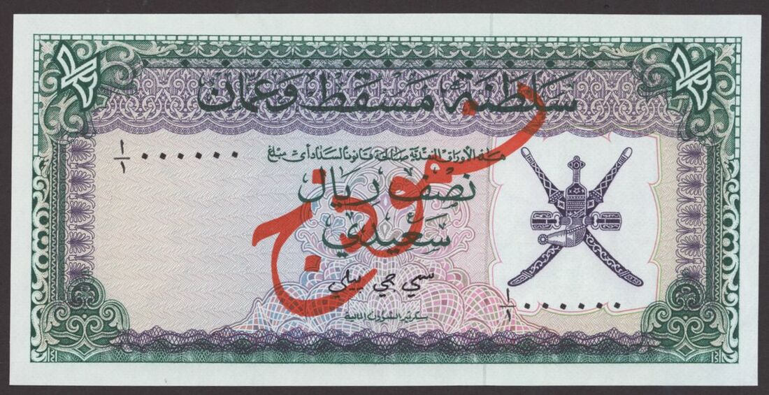 Oman Currency Board, specimen 1/2 rial Omani, ND (1972), serial number A/1 000000, (Pick 9s, BNB 103s), uncirculated