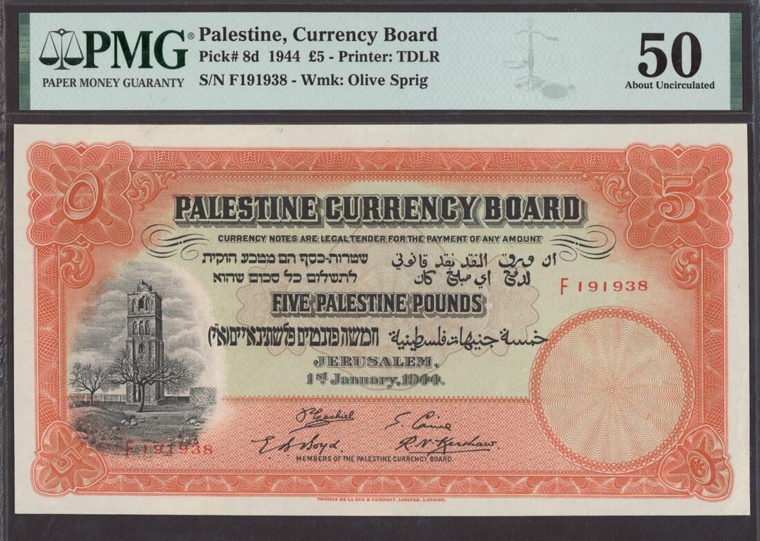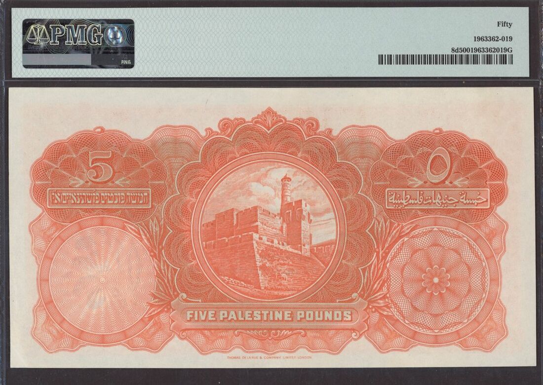 (Pick 8d, BNB 103, Raphael Dabbah p.191), in PMG holder 50 About Uncirculated, rare especially in such high grade