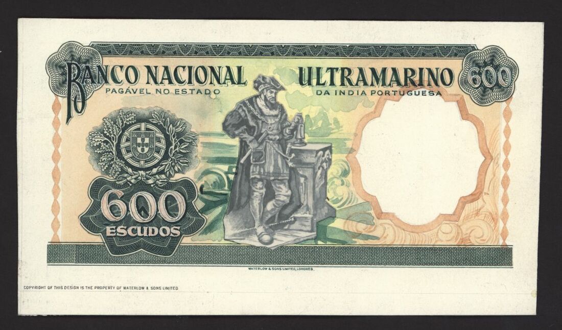 Banco Nacional Ultramarino, Portuguese India, essay 600 escudos, (Unlisted), as made, eye appealing, interesting and rare