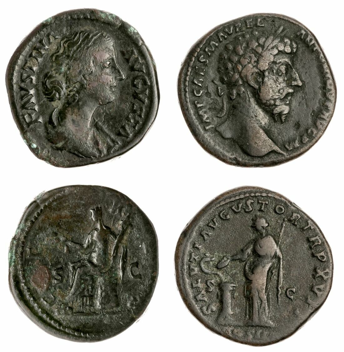 Roman Empire, a Marriage in Bronze (2), Marcus Aurelius (AD161-180), AE As, Rome, c. AD 162-163