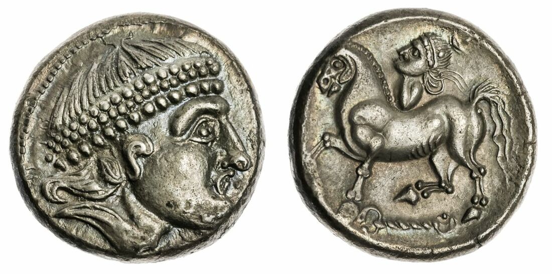 The 'White Rose' Collection | Eastern Europe, A Celtic Imitation of Philip II of Macedon AR Tetradrachm, 2nd Century BC, Mint in the Burgenland-West Slovakian region, Diademed, beardless head right, with "boxer's nose" and pronounced jawline rev. Rider on horseback left, showing only his torso, hair bound with diadem and tied into a topknot with three trailing curls, 12.35g, (OTA, 469; KMW, 1391) well-struck and centred, beautifully toned and detailed, residually lustrous, good very fine example of a wonderfully stylised imitation