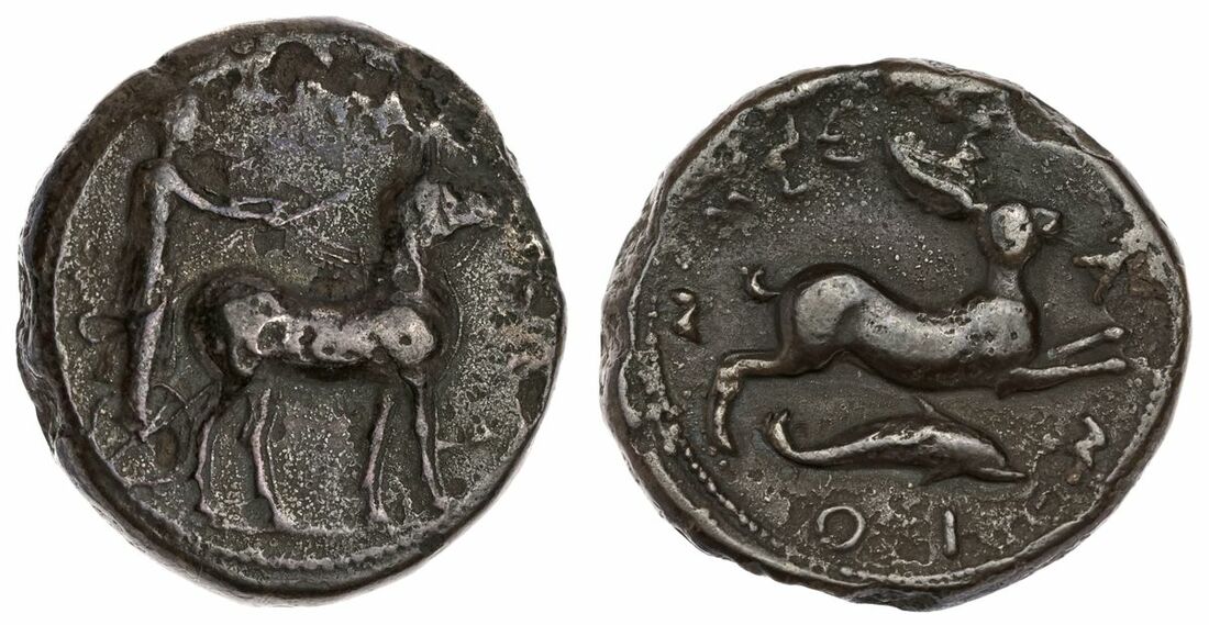 Sicily, Messana, AR Tetradrachm, c.420-413BC, Nymph Messana driving slow biga of mules right, wearing a long chilton and holding reins in both handsrev.