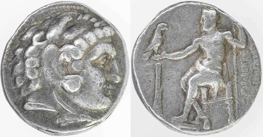 Kingdom of Macedon, Nikokreon, in the name of Philip III, the types of Alexander III, 'The Great' AR Tetradrachm, Salamis, c.331-310BC, Head of young Herakles right, wearing lion skin, rev.