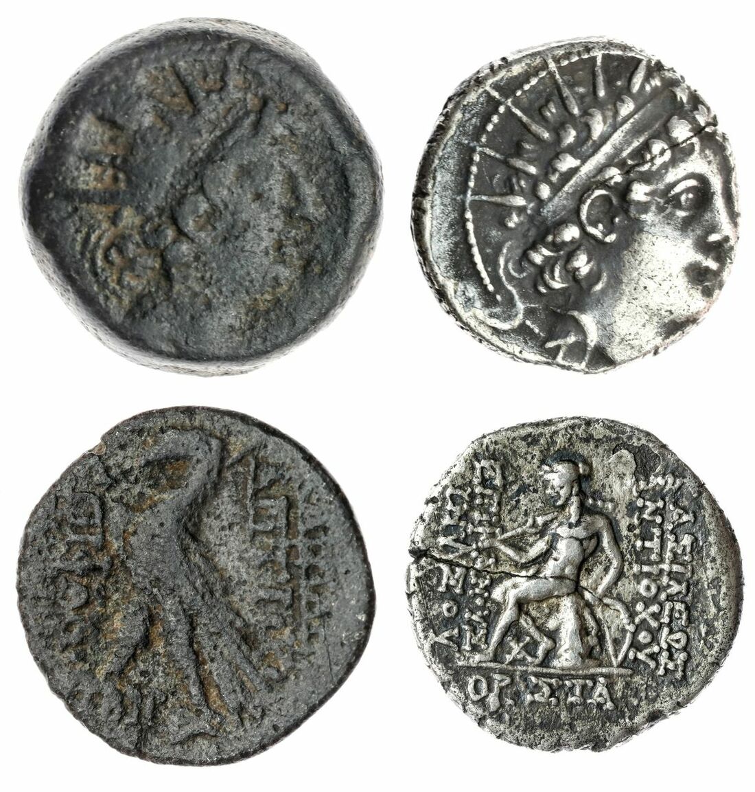 Seleukid Kingdom of Syria (2): i) Antiochos VI Dionysos AR Drachm, Antioch-on-the-Orontes, dated SE 170 = 143/2 BC, Radiate and diademed head right rev. Apollo Delphios seated to left on omphalos, holding arrow and resting hand on bow;