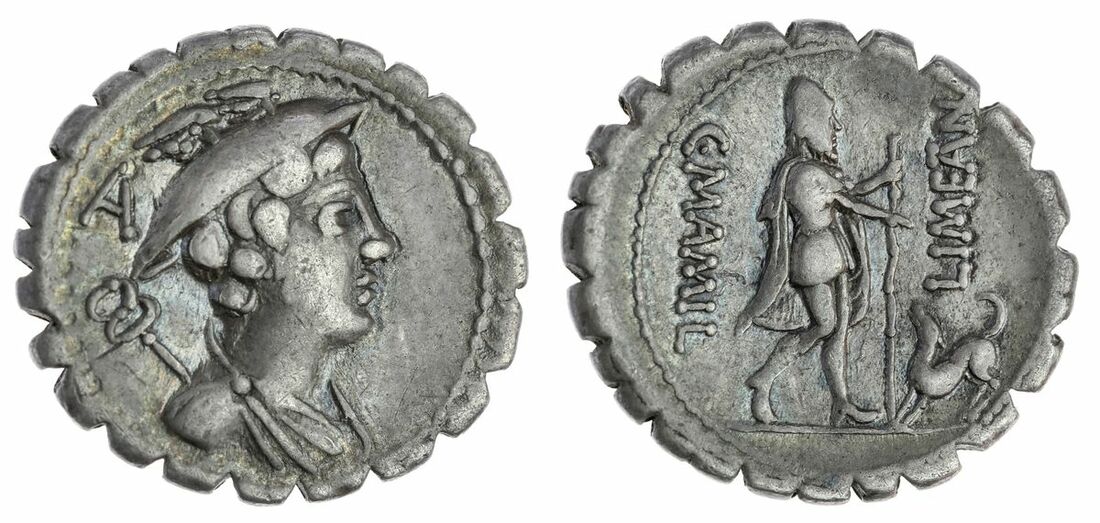 Roman Republic, C. Mamilius Limetanus, AR Denarius Serratus, 82-81BC, Bust of Mercury right,