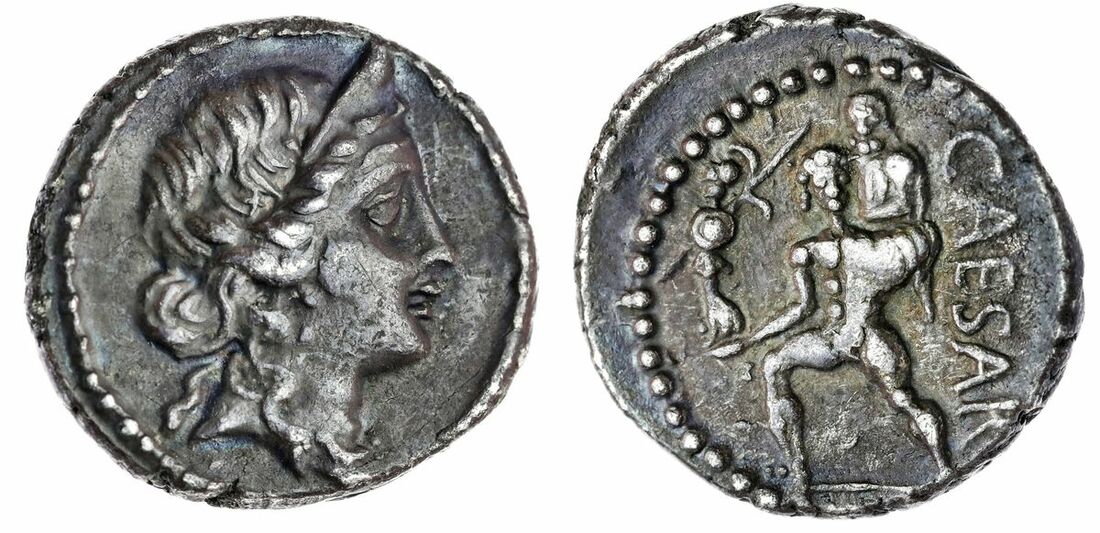 Roman Republic, Julius Caesar, AR Denarius, African mint, 47-46 BC, diademed head of Venus right rev. Aeneas advancing left, carrying palladium and Anchises on shoulder,